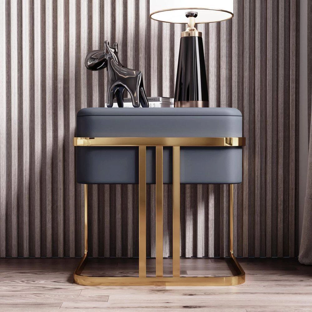 Bring streamlined modern style to your bedside with this modern one-drawer nightstand. This nightstand strikes a clean-lined rectangular silhouette on stainless steel solid legs. One drawer with a smooth cutout handle offers out-of-sight storage for bedside essentials, while the lower shelf is perfect for storing magazines or books.