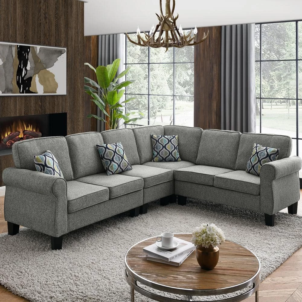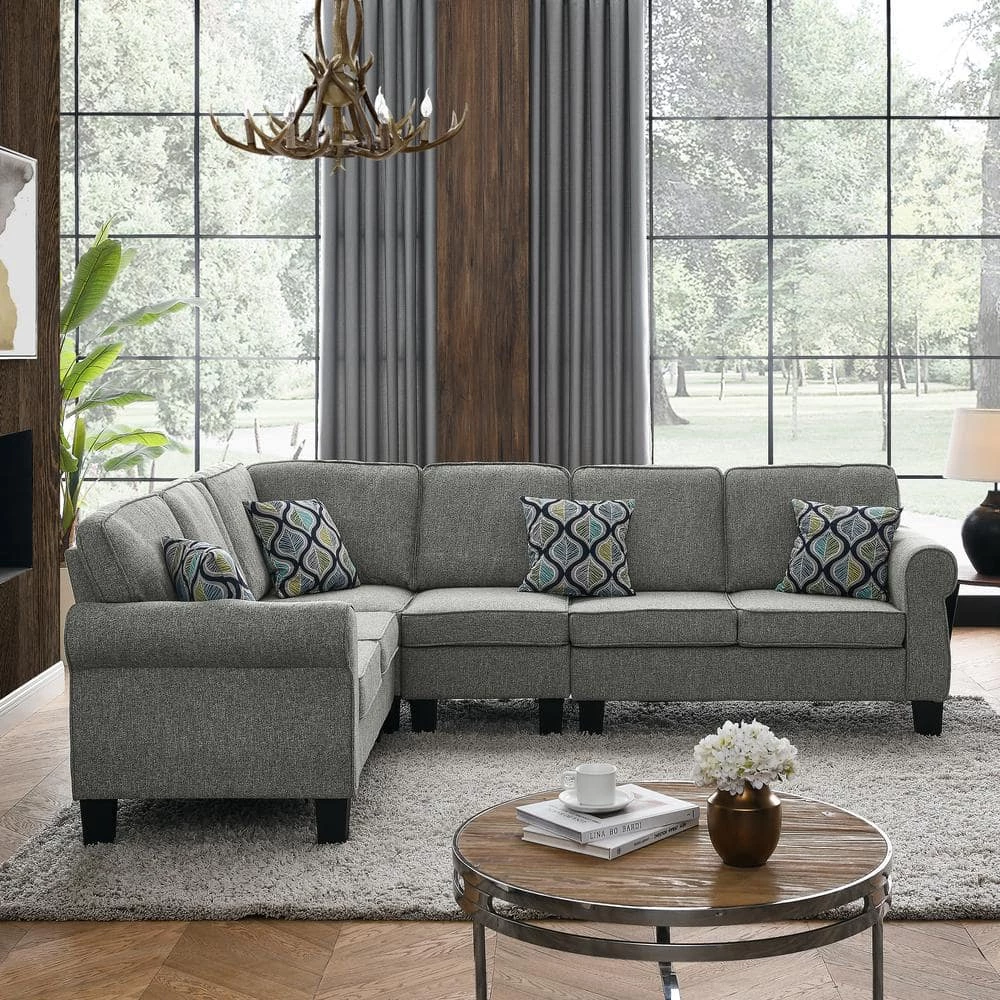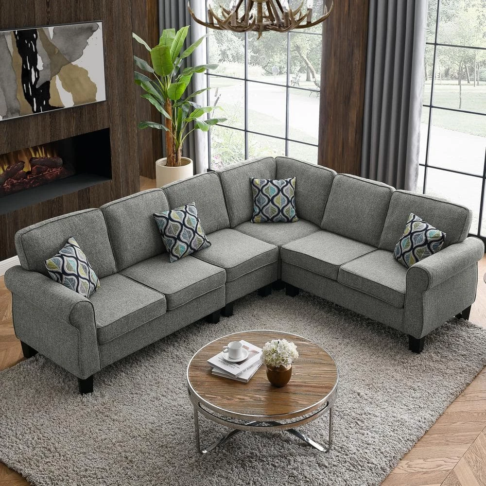 - Upholstered with fabric soft linen in a neutral hue for an inviting look, this set will provide you with unrivaled comfort.