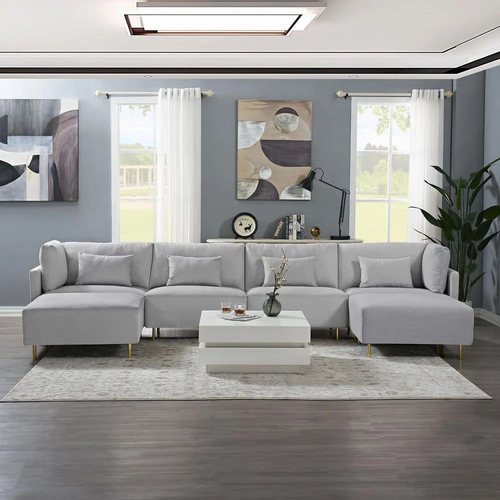 This is not just an U shape sofa, you can combine them freely according to your house space or just you like. Coil Spring and high elastic sponge are added inside the sofa cushion, so that you can sit on it without being too hard. With high quality and soft fabric, you will feel very comfortable.