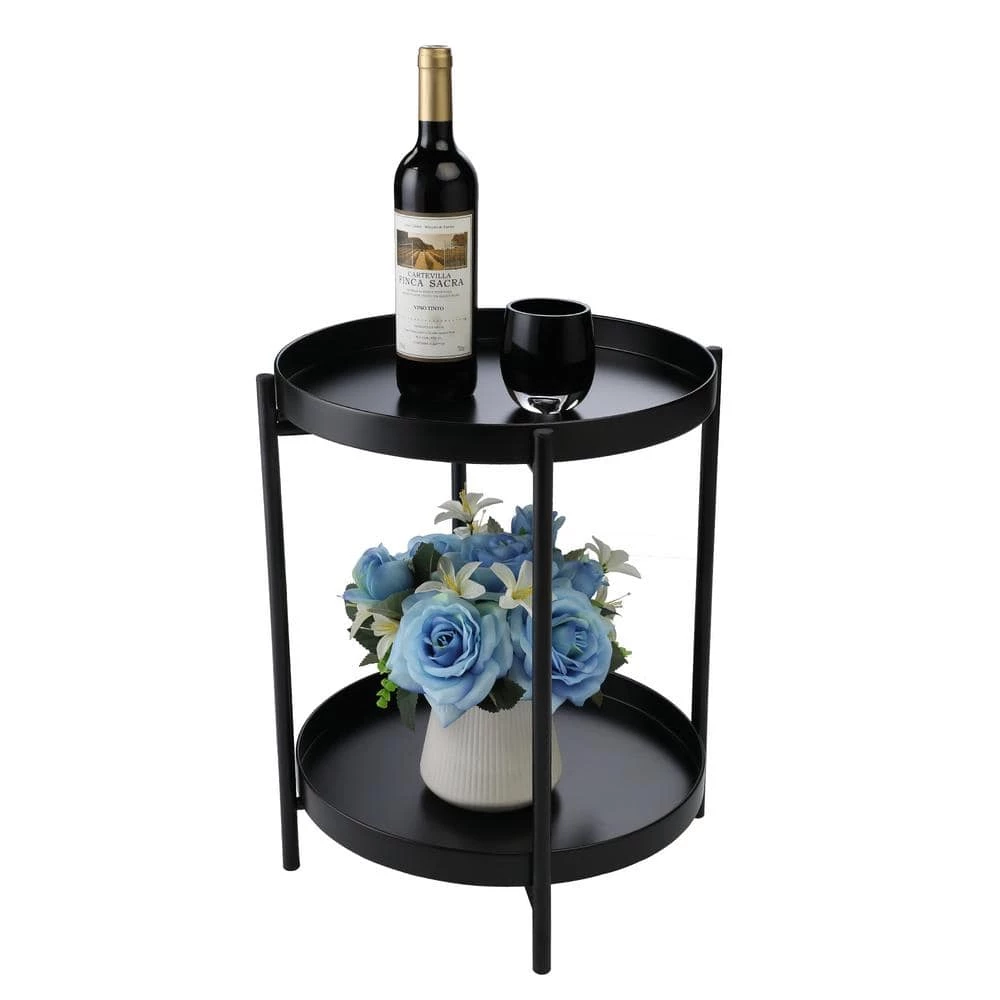 - Perfect Size: Overall dimensions of 15,7 in.L x 15,7 in.W x 19,5 in.H; each tray diameter of 15,75 in., The end table is an affordable piece for living rooms, dorms, offices, hallways, and bedrooms,