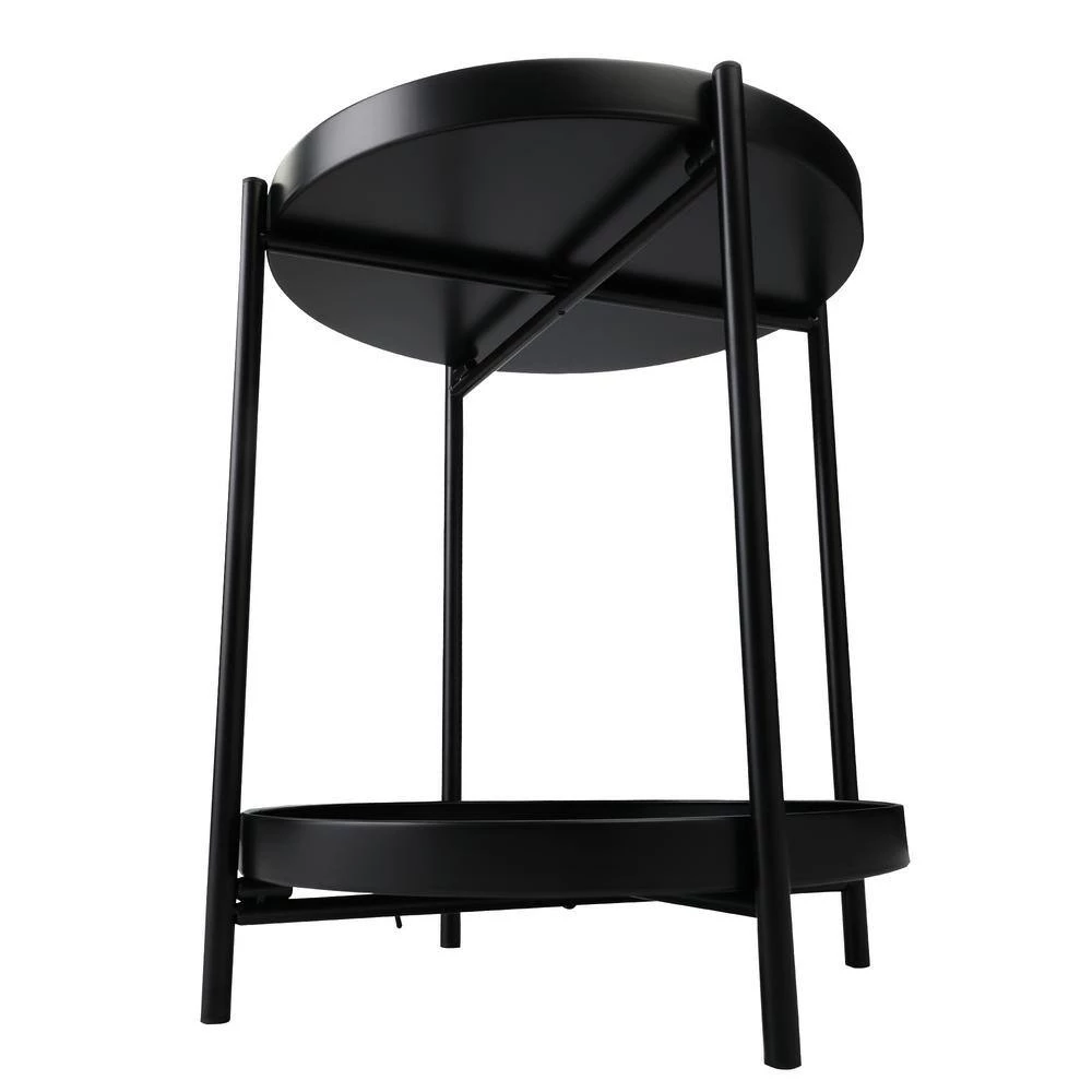 The round coffee table with 2 removable trays can stand along your bed or sofa to serve as a nightstand, plant stand, or snack table without space hassles. Made from high-quality steel frame with a powder-coated finish, the metal side table with nonslip foot mats is sturdy for long use and stable without wobbling. There are metal hooks at the bottom of the bracket to secure the bracket.