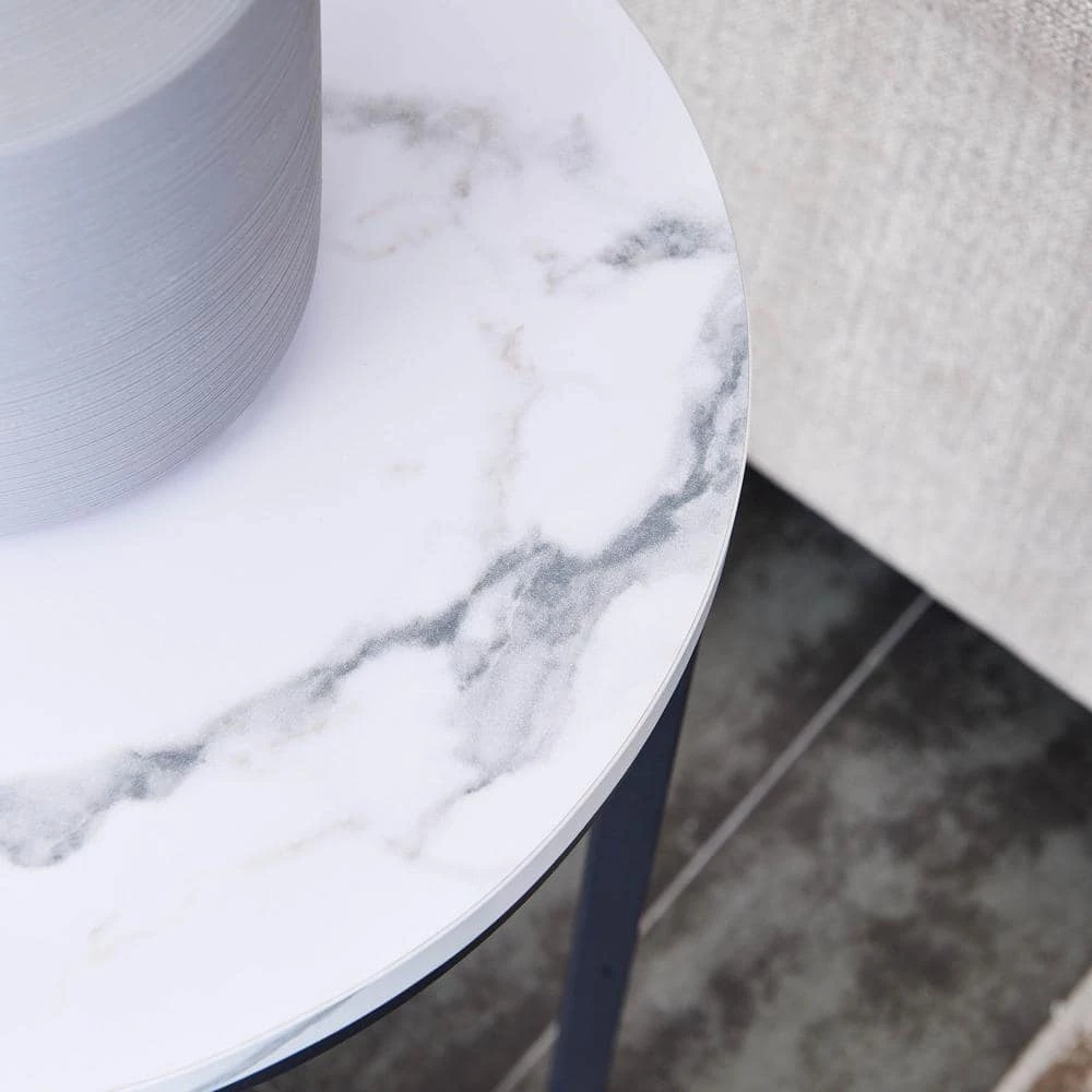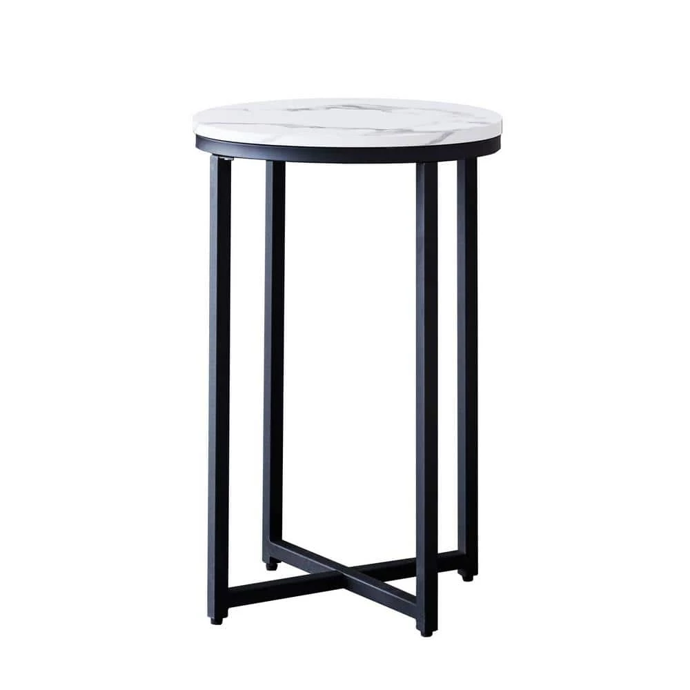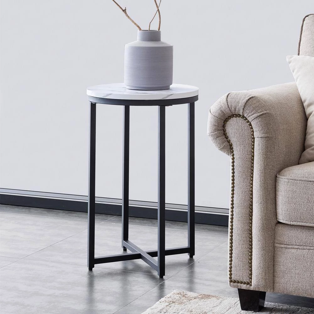 Stable Construction and X-shaped Base- Made of MDF with powder-coated metal legs. The faux White marble finish pairs with a X-shaped metal base welded firmly which increases the contact area on the ground, this end table is of great stability. Ideal as an end table or side table- Perfect for placing magazines, a snack, beverage, or classy centerpiece in your living room or bedroom.