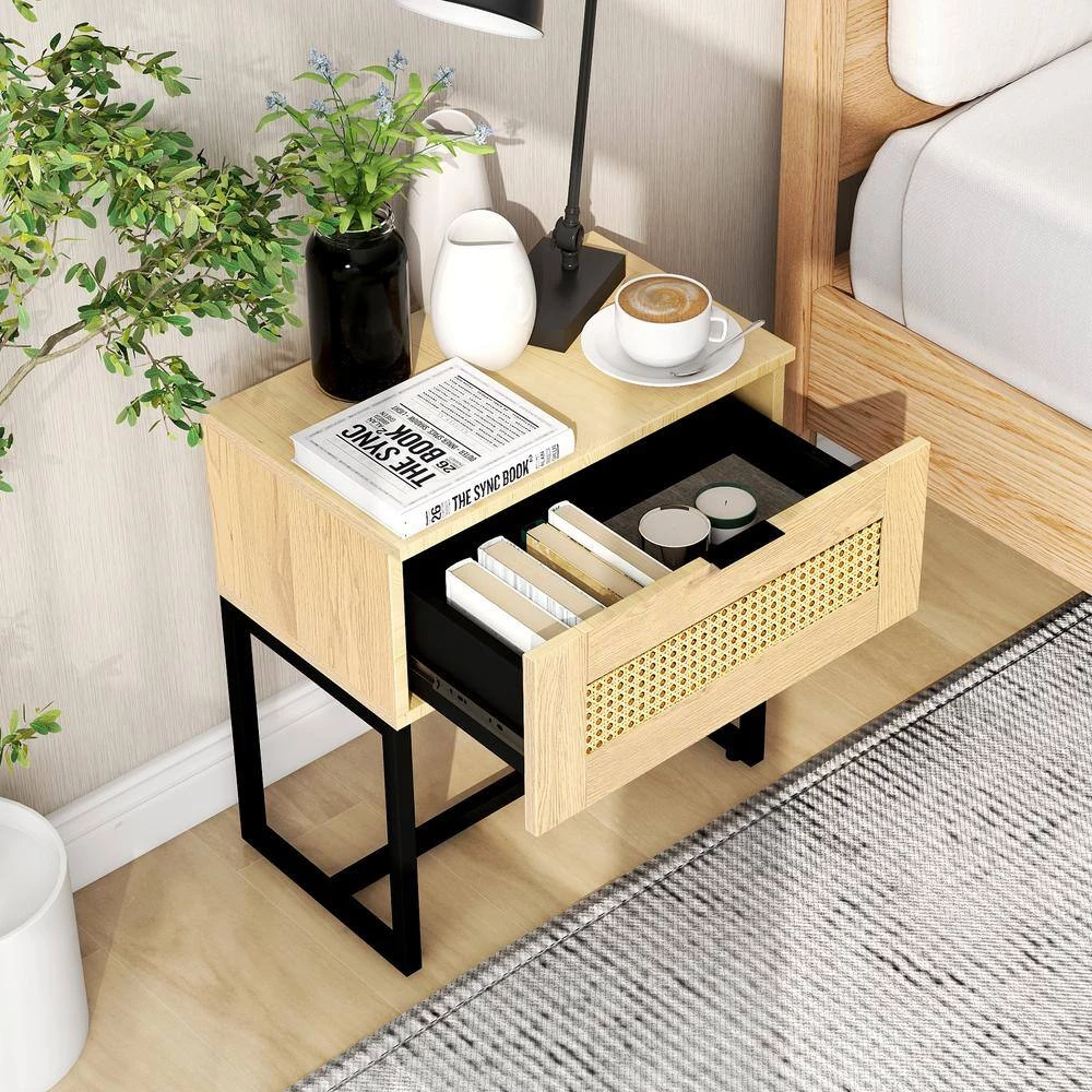 - Modern design: nightstand features a rattan drawer, which not only can provide additional storage space to storage, but also combines modern and bohemian element makes room look more stylish