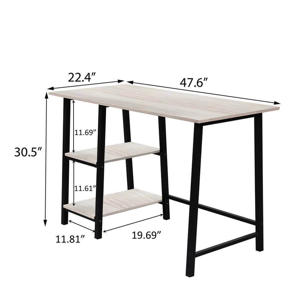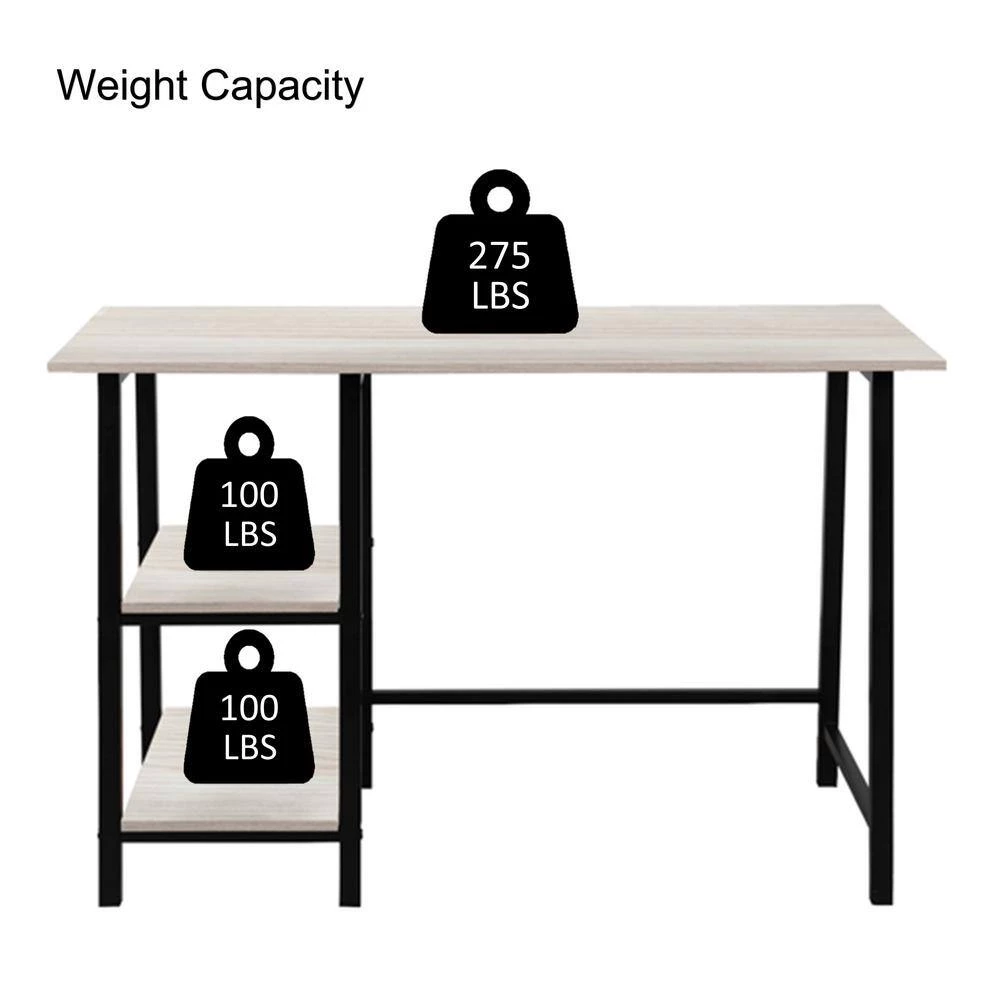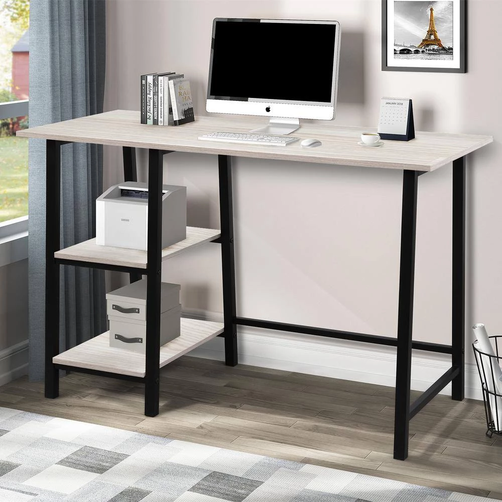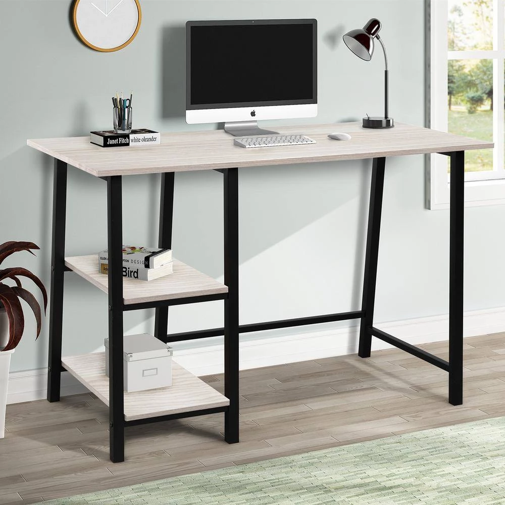 This office desk is a large and durable workstation, it is a great solution to working at home. The side shelving space allows you organize your daily supplies easily. The stylish contemporary design can perfectly match the decoration of your work room.