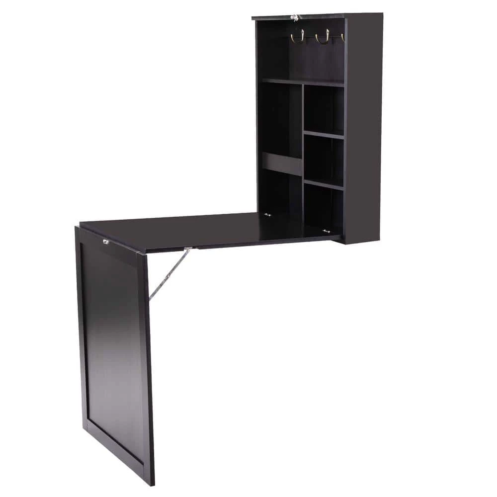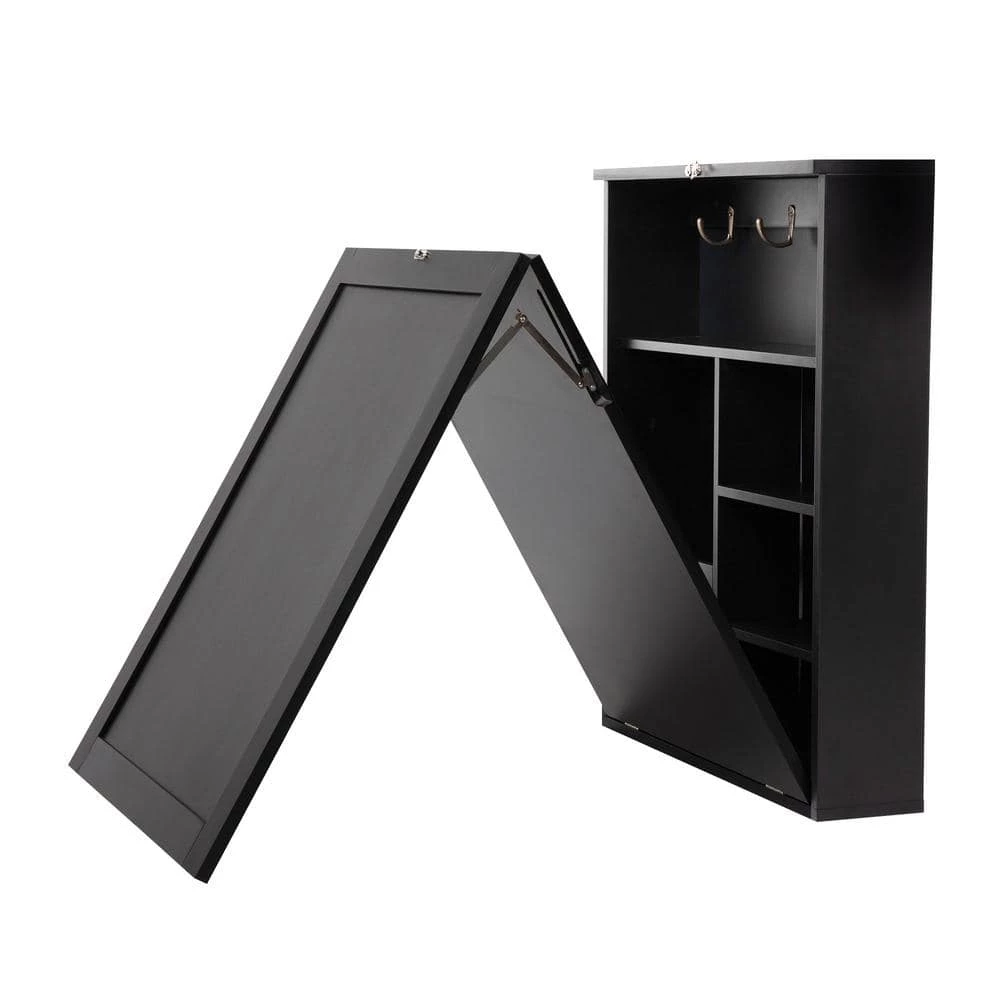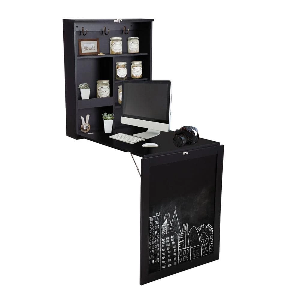 The table is made of premium P2 grade MDF material with NC coating. And the board is thick and firm, with enough bearing capacity to meet your daily use. The inner storage space is equipped with 3 bronze metal hooks, which are convenient for storing keys and other small life objects. The blackboard allows you to record personal to-do items or leave messages to family members when in a hurry. Wall-mounted and folding designs make the most of space. This desk can be spread out as a computer desk, folding can be a cabinet, effectively ensure the room is clean, efficient use of space.