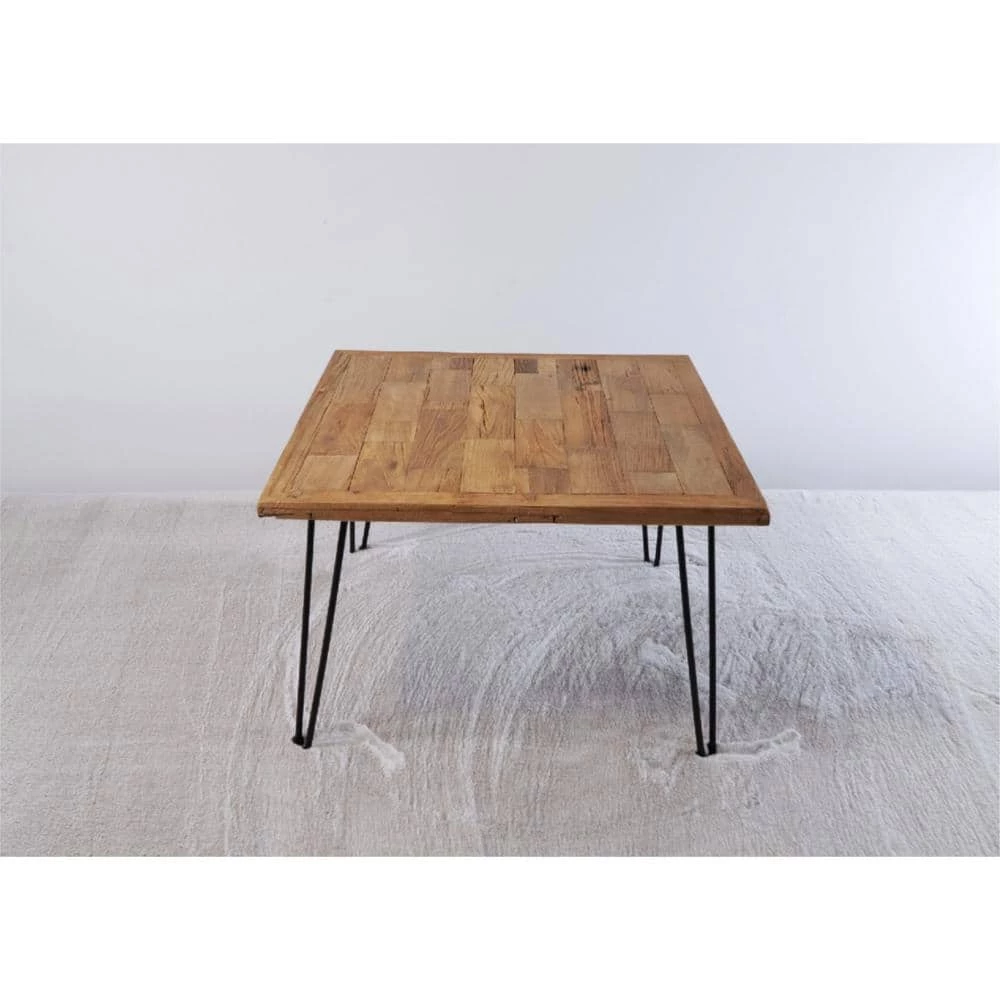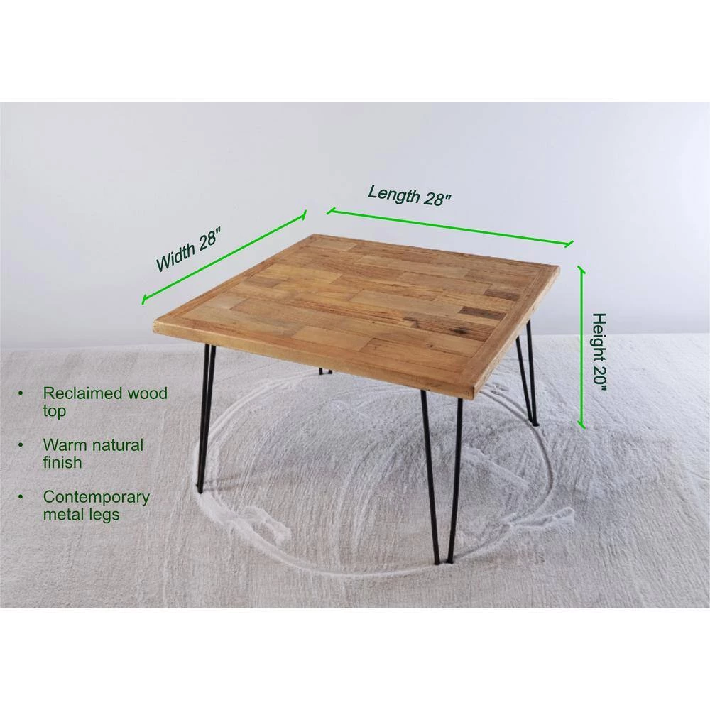 Our Home Decorators Collection Tidoin coffee table is a blend of modern and organic influences. Its natural wood top is finished to appear as if it has live edges. Splayed metal legs counterbalance the square tabletop. The table is a stylish choice for modern, rustic and farmhouse furnished living rooms.