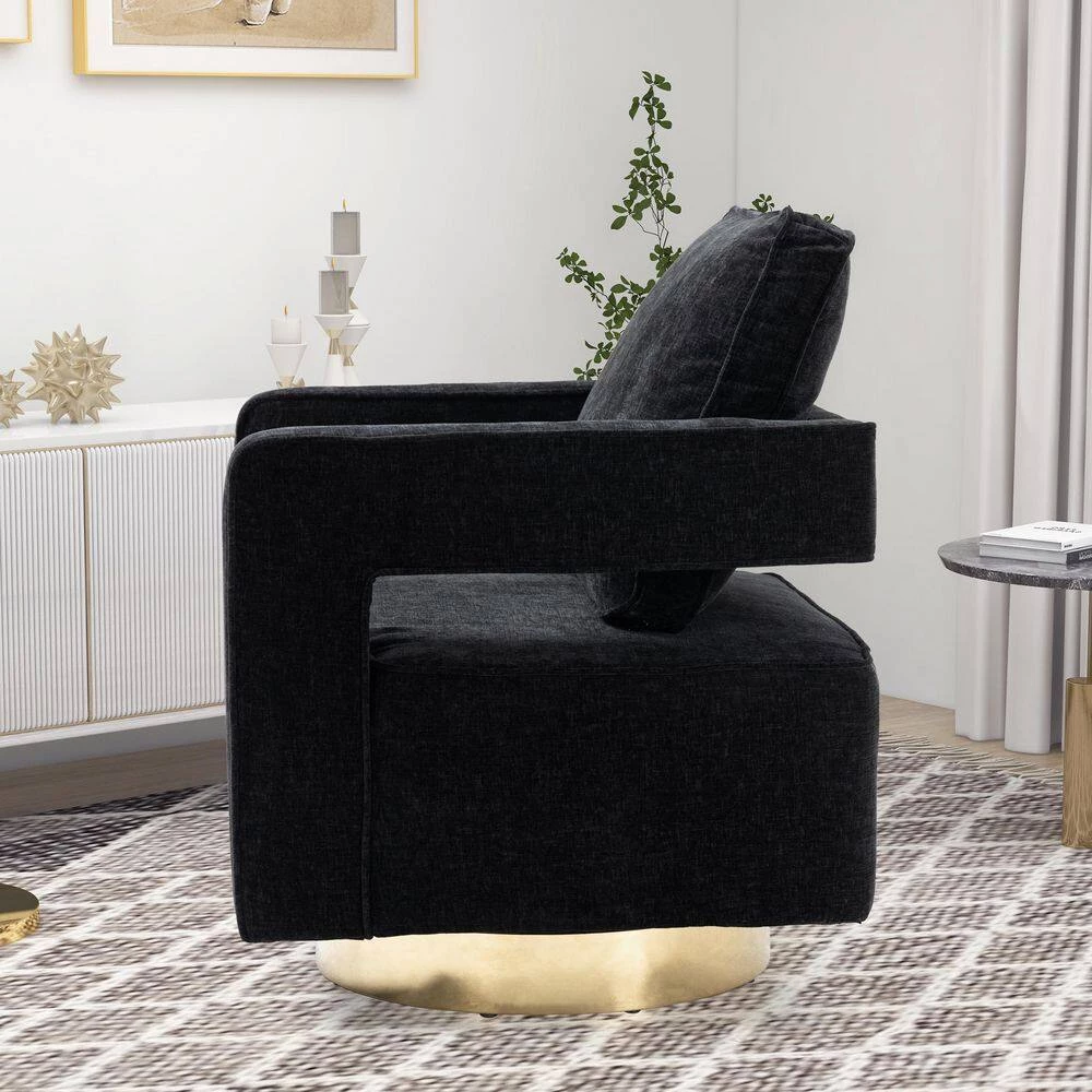 This modern chair can be rotated 360° and has great flexibility in the house. The seat cushion of the chair is filled with a distinctive sponge, which is not only beautiful in appearance, but also more comfortable to ride.The seat is very wide and its easy to clean, the armrests of the chair also allow your arms to relax.