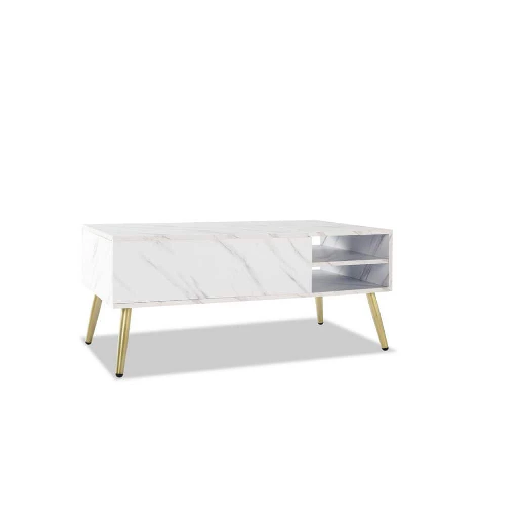 - Crafted from MDF with water-resistance marble grain PVC veneer