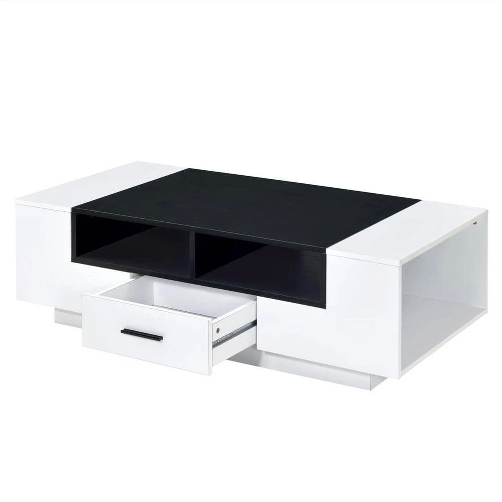 Showcasing a clean-lined elegant design, this Armour coffee table will be a perfect station in front of a loveseat or a cozy seating group. Expertly crafted with selected veneers, and engineered woods, features a white finish that brimmed with contemporary appeal. Along with the open compartments on two sides and shelves, it also includes drawer for storage and organizational needs.