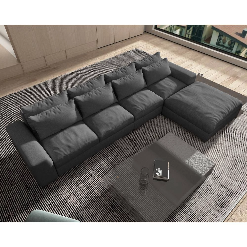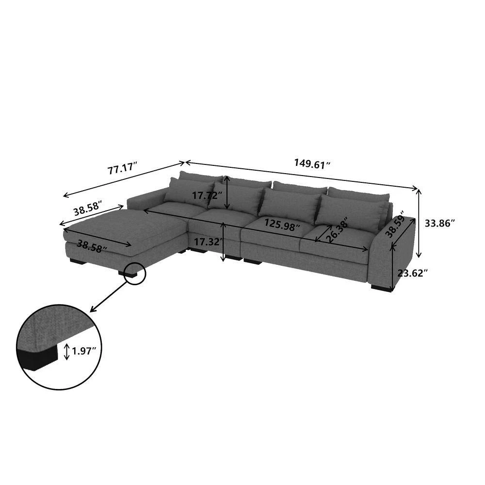 Just think of this sectional sofa as the ultimate comfort pit for binge watching, kid sleepovers, and family game night. This down feather filled sectional sofa has 3-pieces,-including 2-pieces of couch, and a ottoman. It can be put together into kinds of corner sectional as the product pictures displayed, sized to seat five comfortably.