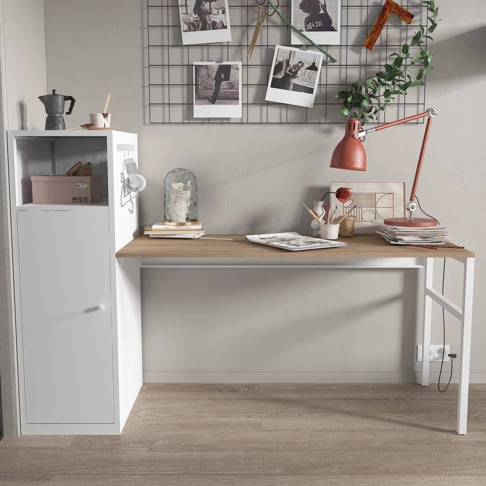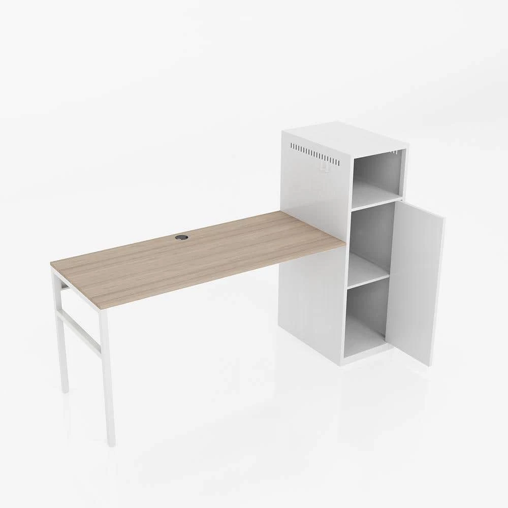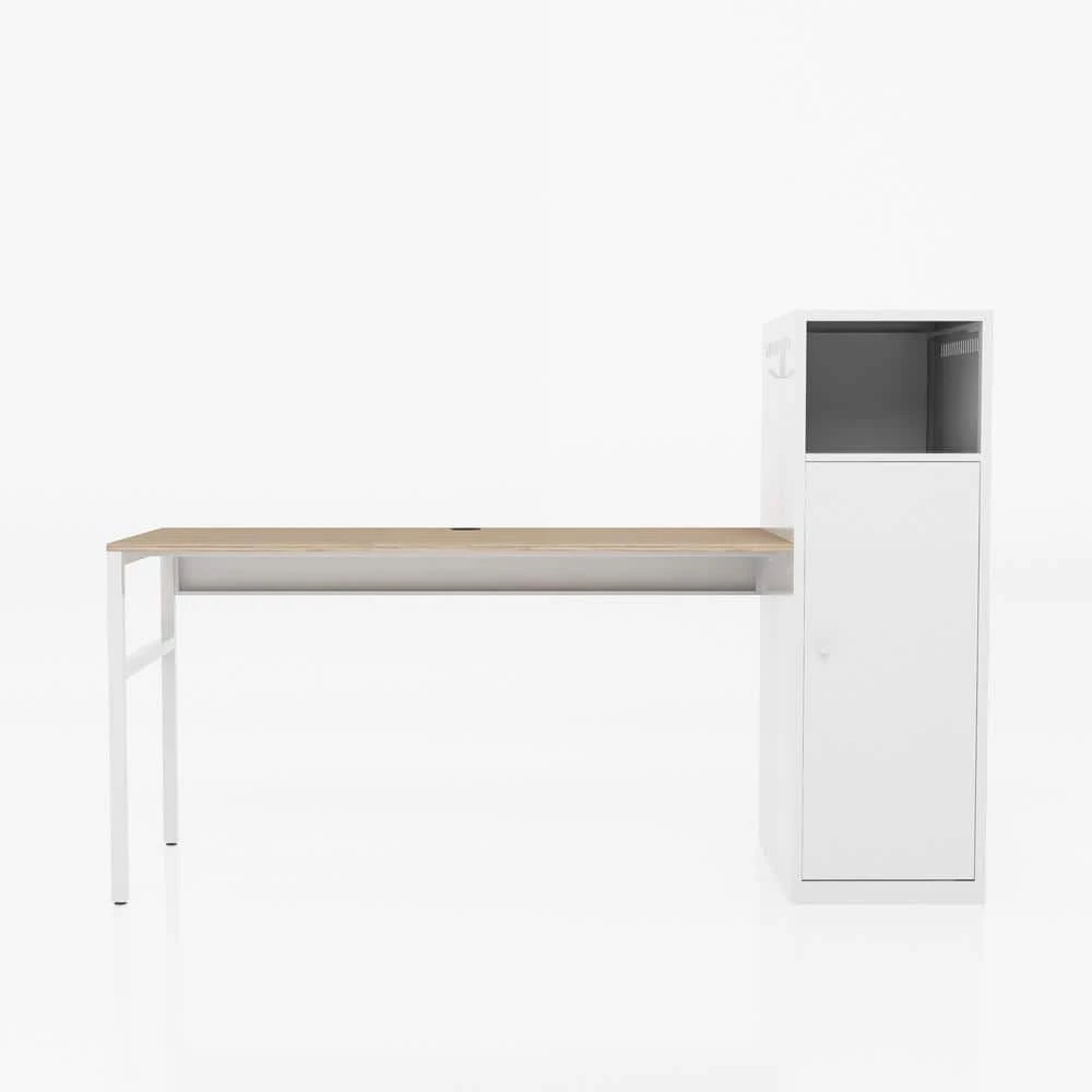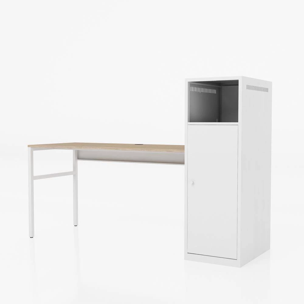 52.7 in. Rectangular White Wood Computer Desk Office Table with 2-Hook 1-Shelf and 1-Door Metal Locker by Tidoin
