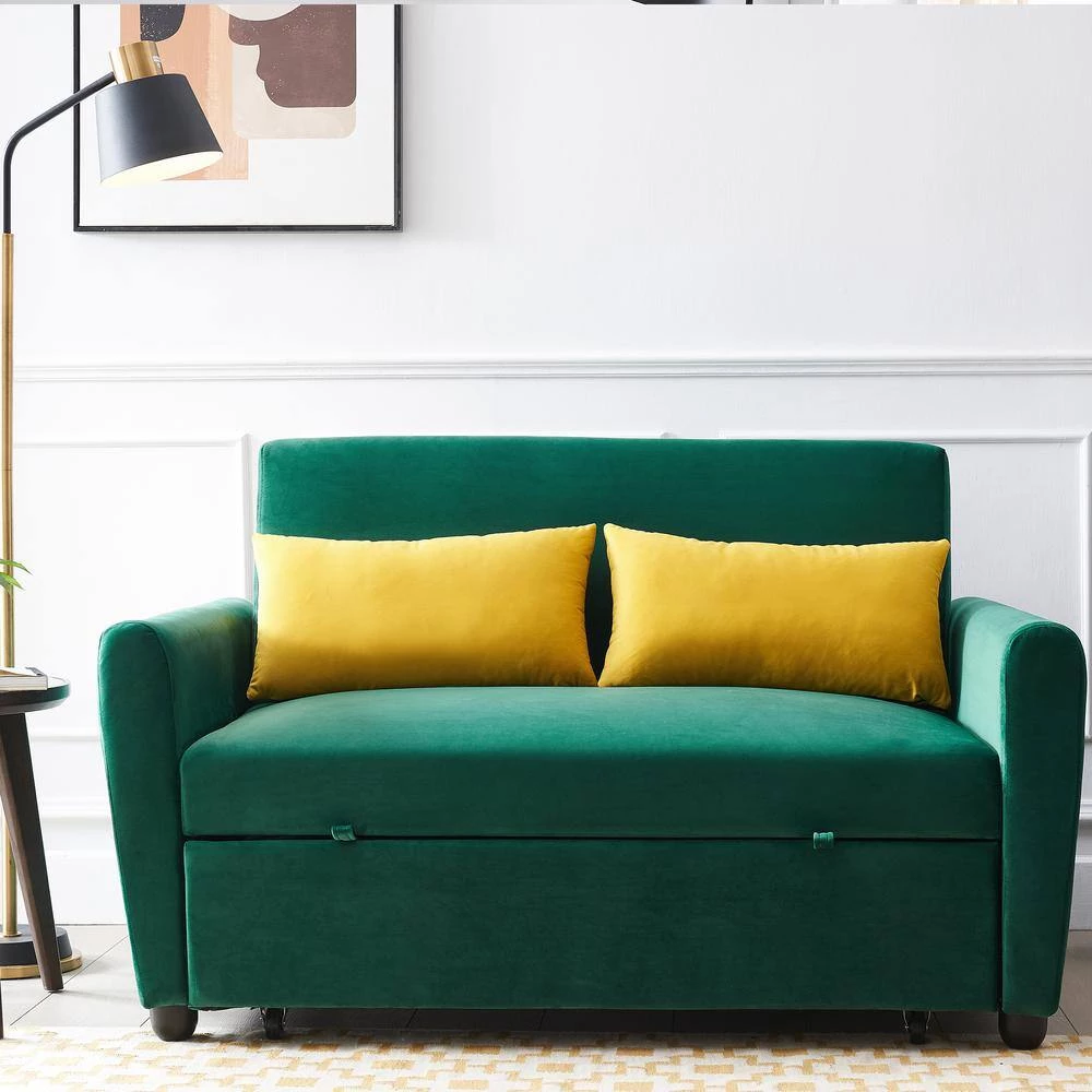 After a long day at work, take off your shoes and snuggle into the soft cushions of this sofa and rest your back against the elastic backrest. Now all you need is this Velvet Sleeper Sofa Bed. Get a modern look that adds comfort and elegance to your home with this convertible sofa. Being multifunctional, it is a stylish sofa by day but quickly converts into a sleeper bed by night to host your friend overnight. Perfect for small spaces.