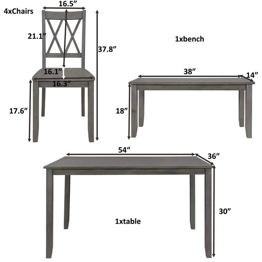 - Finished with retro and graceful antique graywash coating as well as classical cross back, this eye-catching dining table and bench set serves up irresistible charm and a home-grown cottage aesthetic for your dining room.