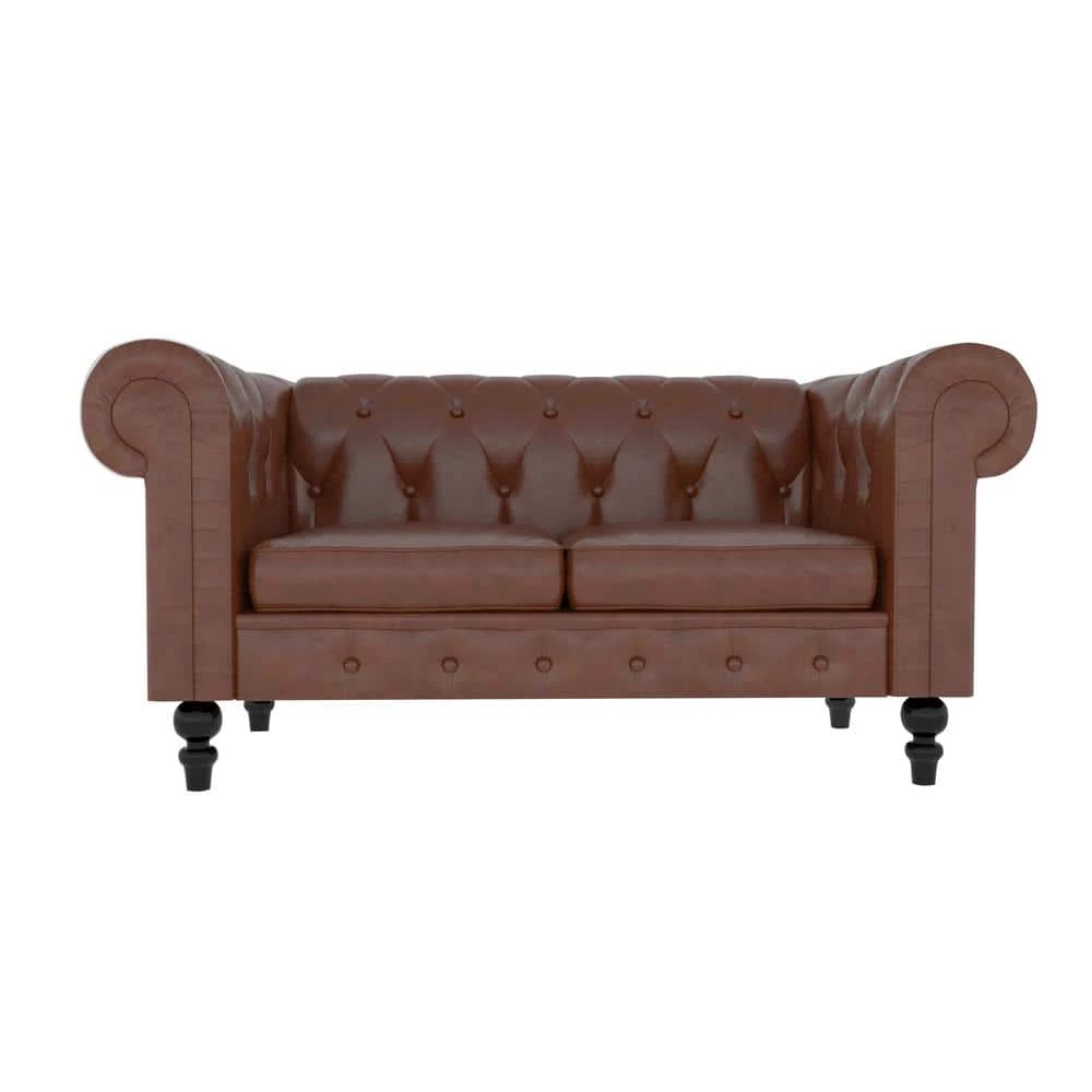 Richly upholstered in vegan leather, this lush sofa evokes the classic Chesterfield design with hand-applied button tufting, smooth curled arms, a spacious seating for 2, black legs. The Spencer possesses a sophisticated vintage chic that never goes out of style, and with its faux leather fabric treated to resist cracking and peeling, this sofa is sure to remain a centerpiece in your living room, guestroom, or parlor for years to come. In addition to its good looks, this couch also convinces with its stability.