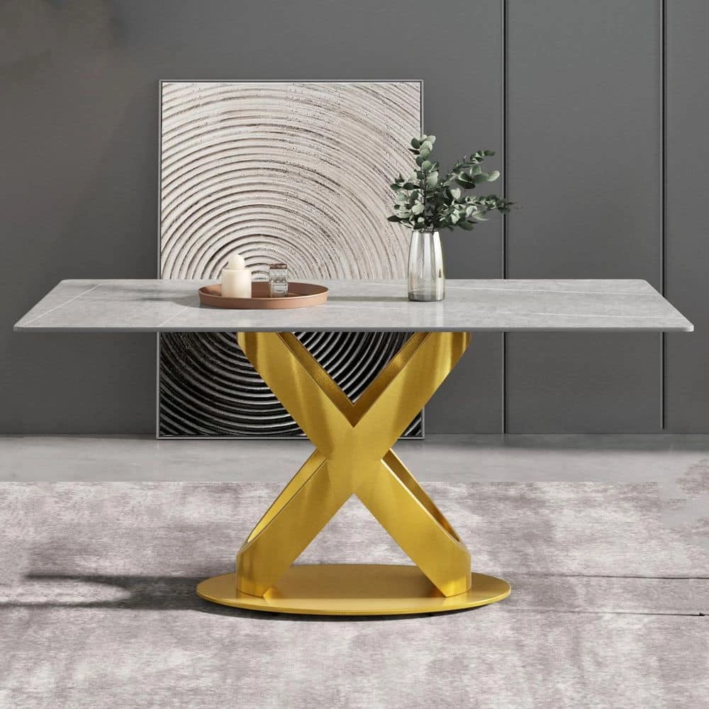 The dining table is the focal point of the dining space, so why not rock a gorgeous dining table that will make your space unique? This sculptural dining table will make an eye-catching statement in any dining room. The classic white stone tabletop keeps things polished and elegant. The eye-catchy geometric legs that create a cool look. Such a table will be a perfect idea for any modern or minimalist dining space.