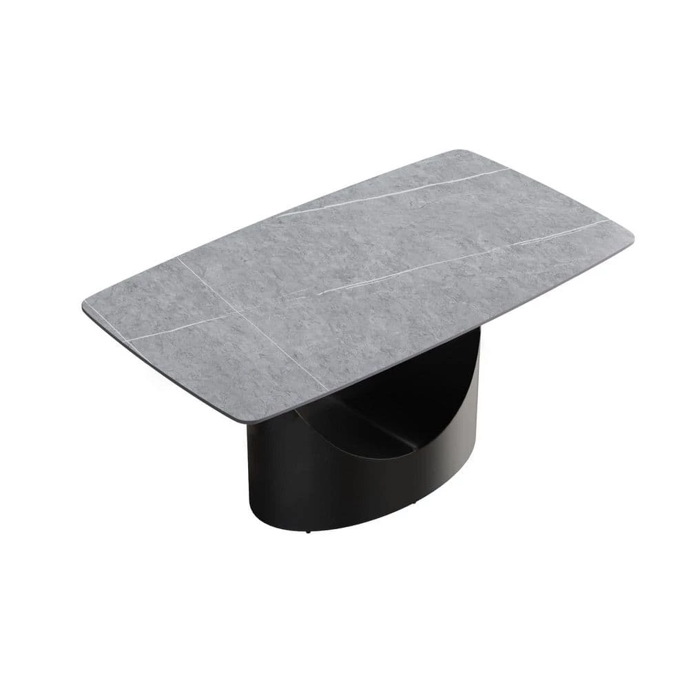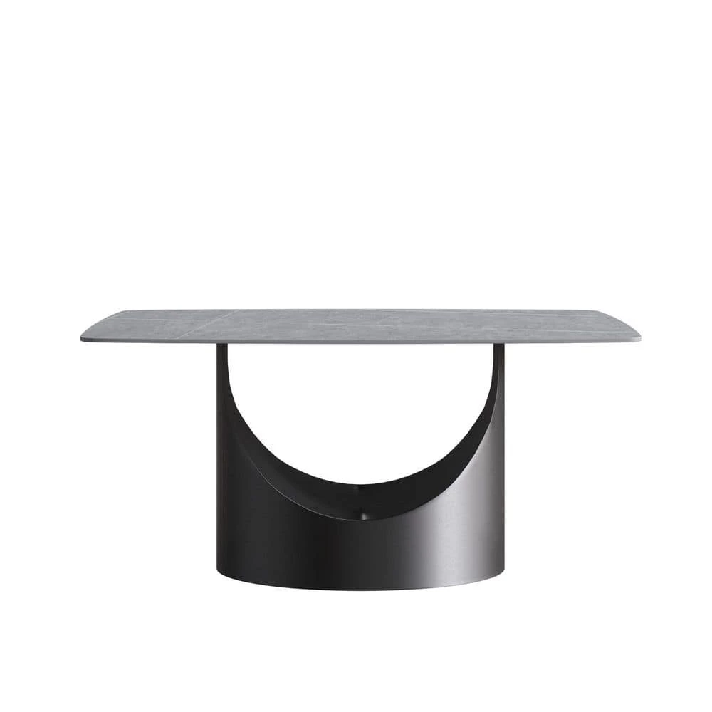62.99 in. Modern Rectangular Grey Sintered Stone Dining Table with Black Carbon Steel Legs by Magic Home