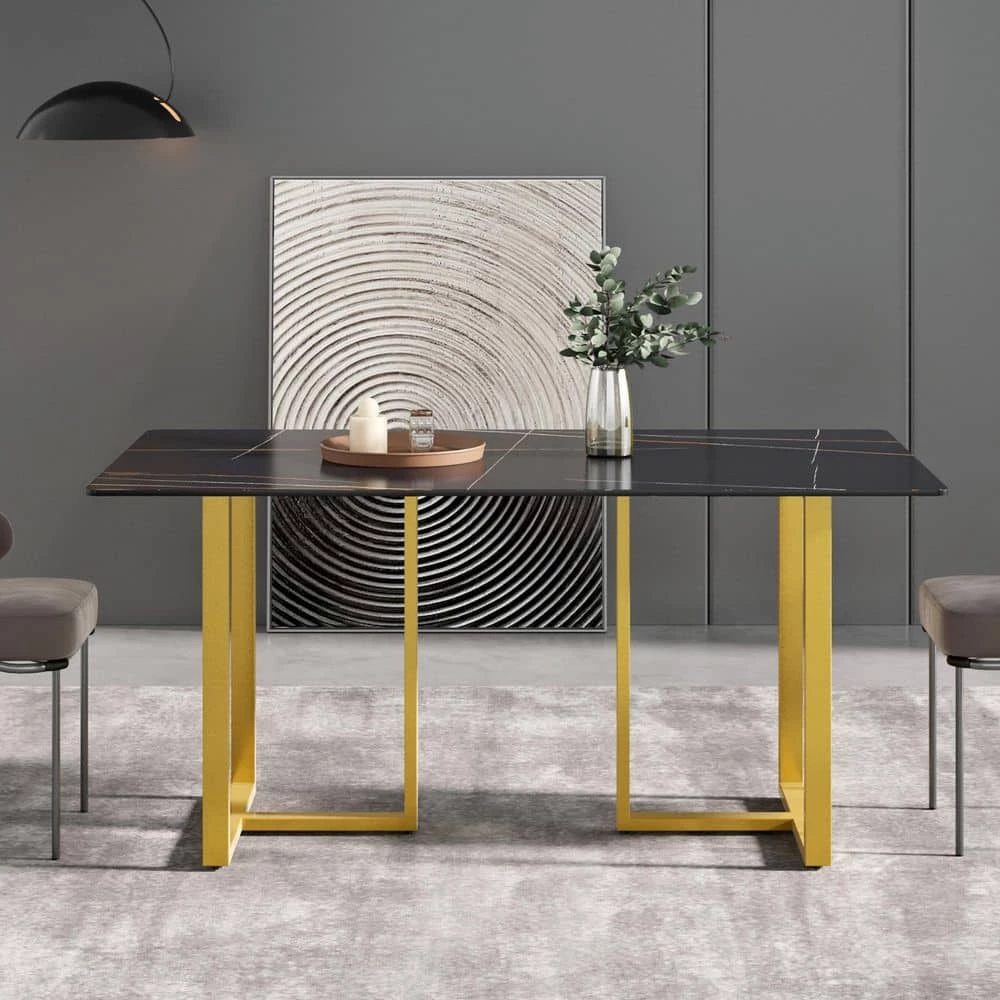 This dining table is made of a solid slab of Black marble and rests elegantly on the timeless, minimalistic frame. The frame itself is made of high-quality stainless steel and is suitable for indoor use. This rectangular white table can be combined with various styles of chairs or benches. It doesn’t matter whether you have a modern or a more classic interior, this white rectangular dining table will be a rich addition to your living or working space.