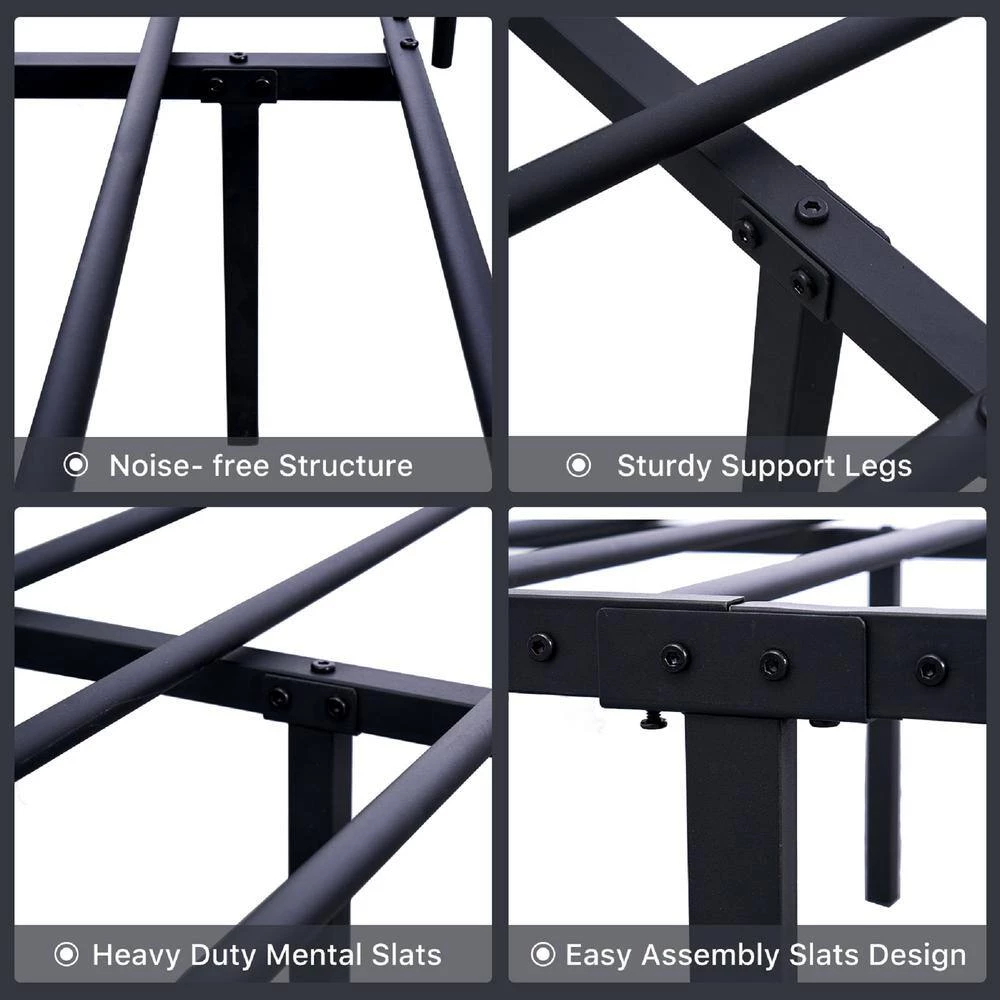 77.56 in. Black Twin Metal Platform Bed by Tidoin