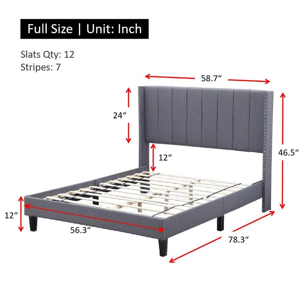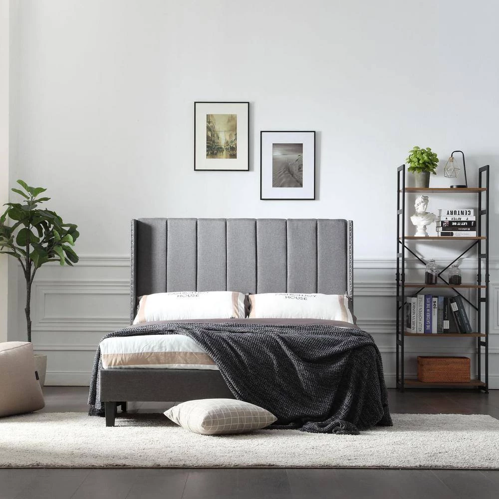 - Modern and Mid Century Design: Bed Frame with Wingback Headboard and Platform with Slats. Soft fabric covered