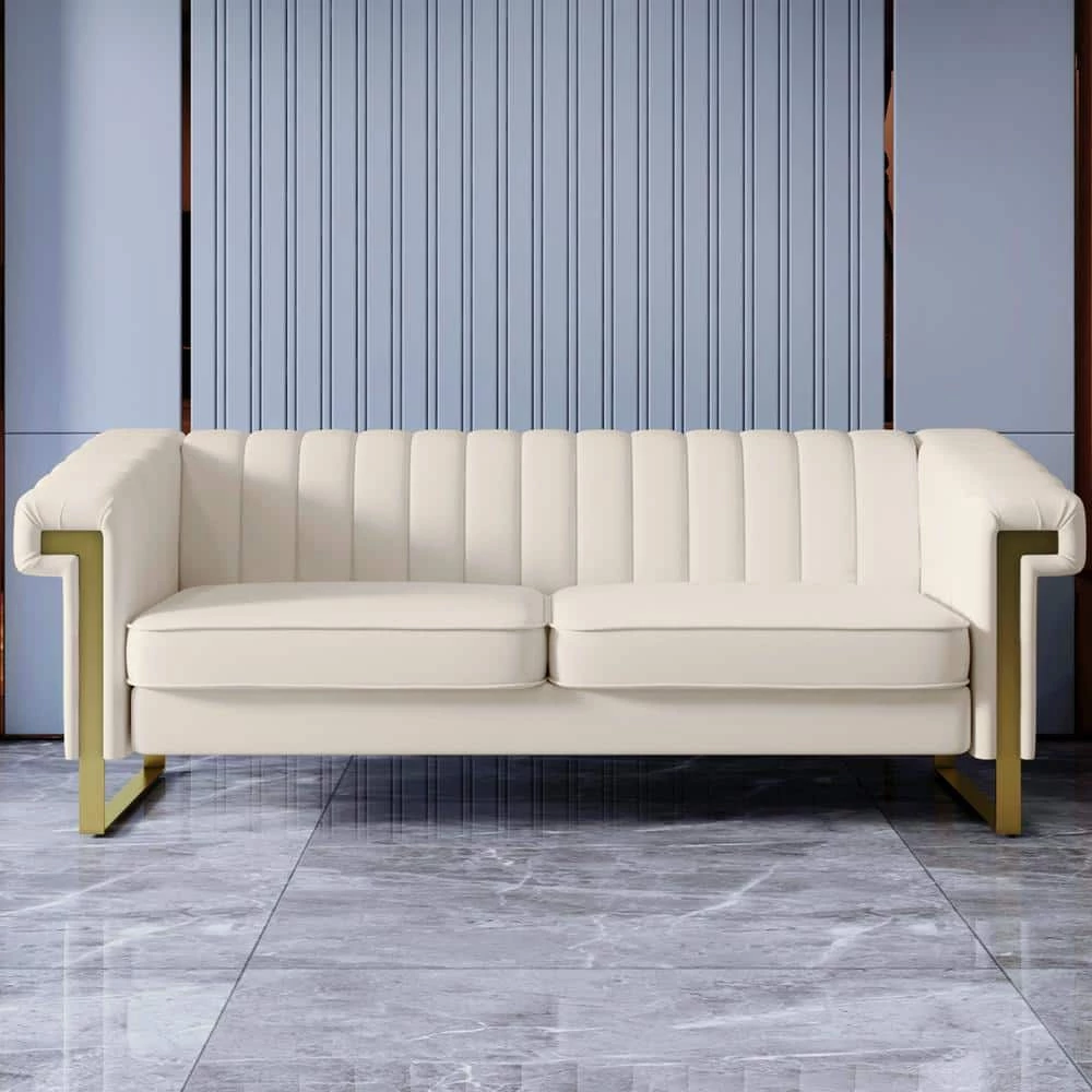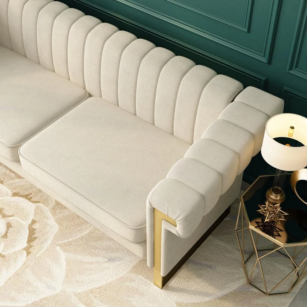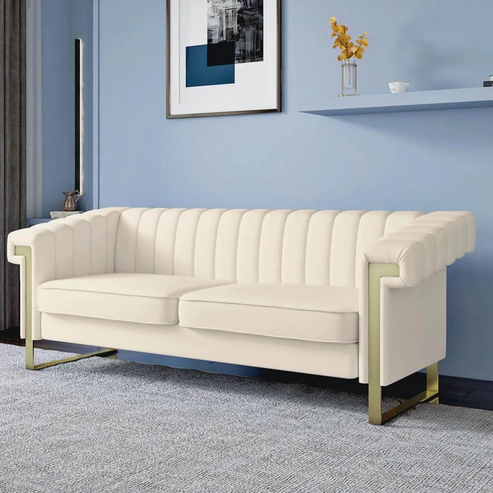 The slender shape and channel-tufted upholstery are unmistakably Modern design, while soft velvet and shiny metal legs bring contemporary elegance. This piece is a stunning style statement for glam and modern rooms. You and your guests will relax in comfort and style.