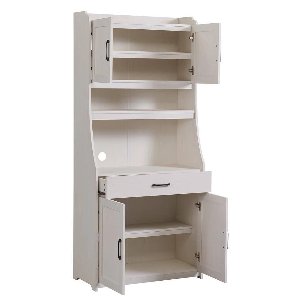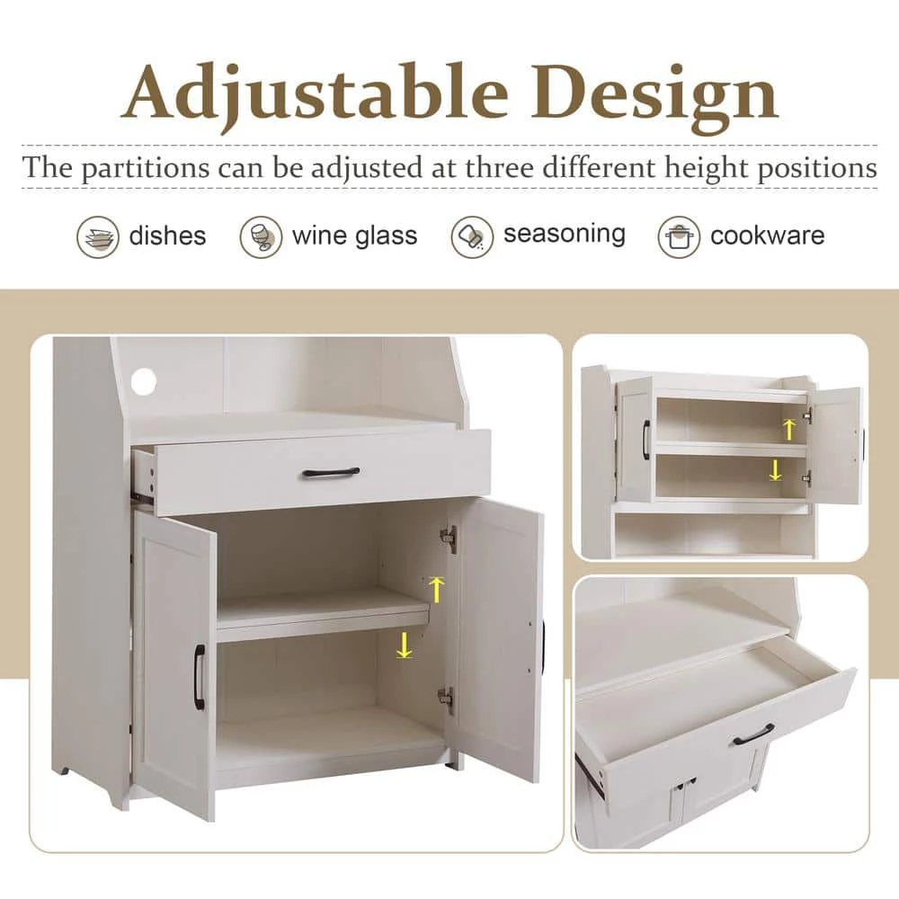 This is an one-body style pantry cabinet, the lines of it are simple and fluent, present a generous and decorous temperament, did not have too heavy and complicated moulding, more show contemporary feeling. Reasonable layout of this buffet cabinet enhances the function feature while having elegant appearance. As a functional furniture, the design about this buffet cabinet focus on storage space. In that case, this modern style buffet cabinet has ample storage space to accommodate daily objects in a dining room or living room. and it can be put in kitchen to store kitchen utensils as well. This buffet cabinet can be a very adaptable piece of furniture in your house. This buffet cabinet has two storage. Cabinets at the top and the bottom respectively and the part. tions of these two storage. Cabinets can be adjustable according to different needs in your daily life. The part. tions can be adjusted at three different height positions and they can be removed as well. A wide drawer above the bottom storage. Cabinet can store items.