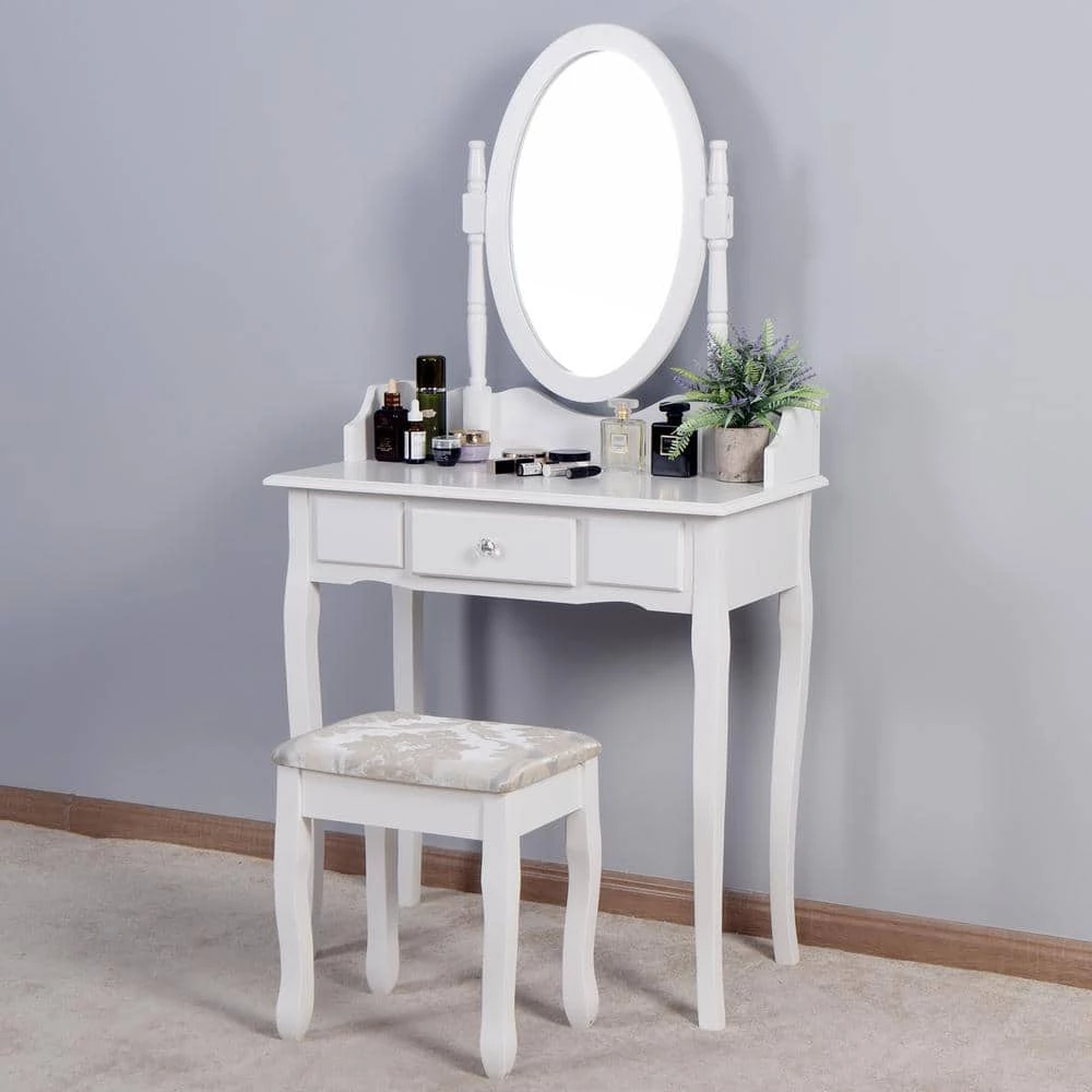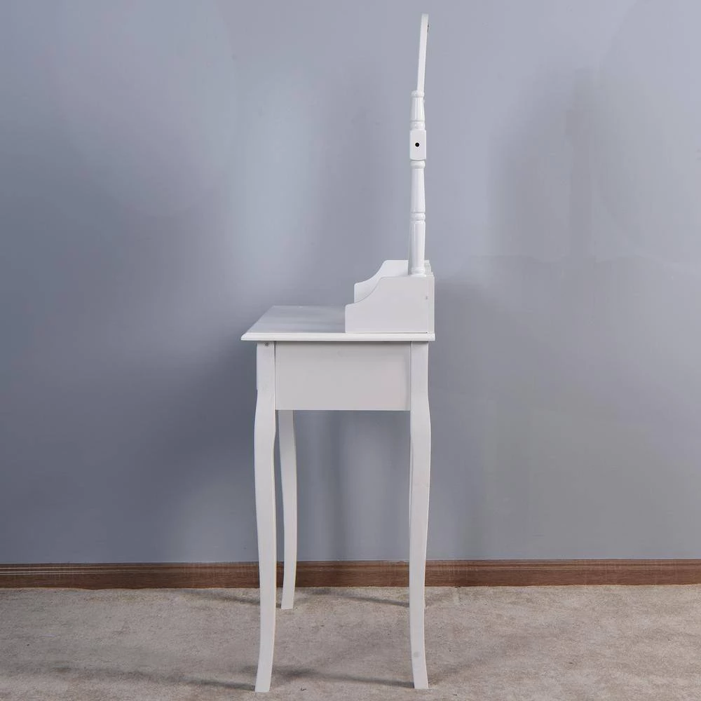 Solid Wood Legs and Dressing Table Set:The vanity dressing table set has 100% solid wood as legs to ensure the stability and solidness. The table once installed, it does not wobble easily. A cushioned stool match with the table, so you can seat comfortably when you dressing. Do not hesitate, just buy one.