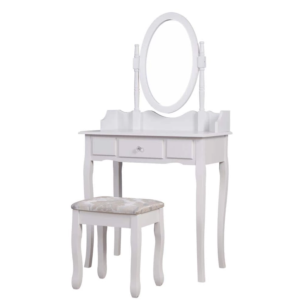 - Smooth tabletop offers an excellent platform to display your cosmetics, perfume, and beauty supplies, while one deep drawer with a fixing design helps store small accessories or facial masks