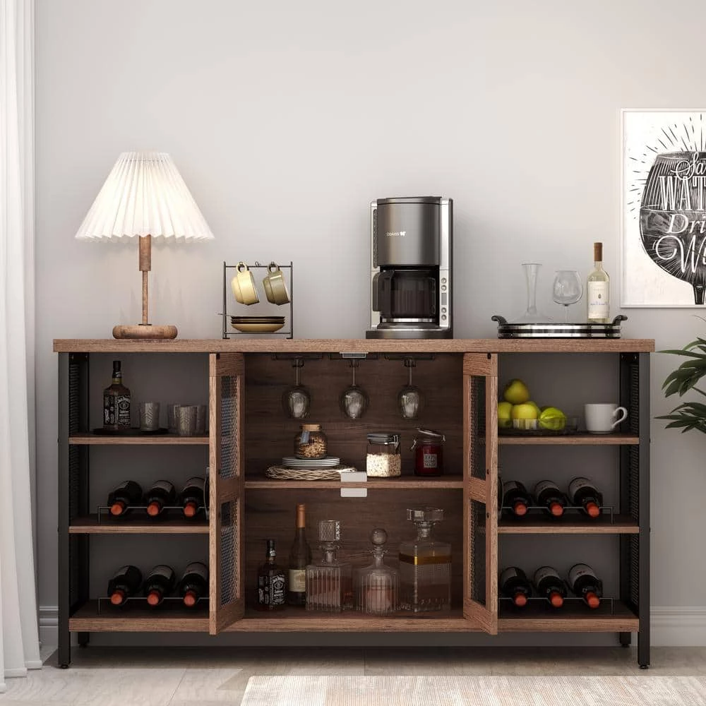 Golden Phoebe 12-Bottle Wine Cabinets with 4 Shelves and 3 Wine Glass Hanging Racks by Tidoin