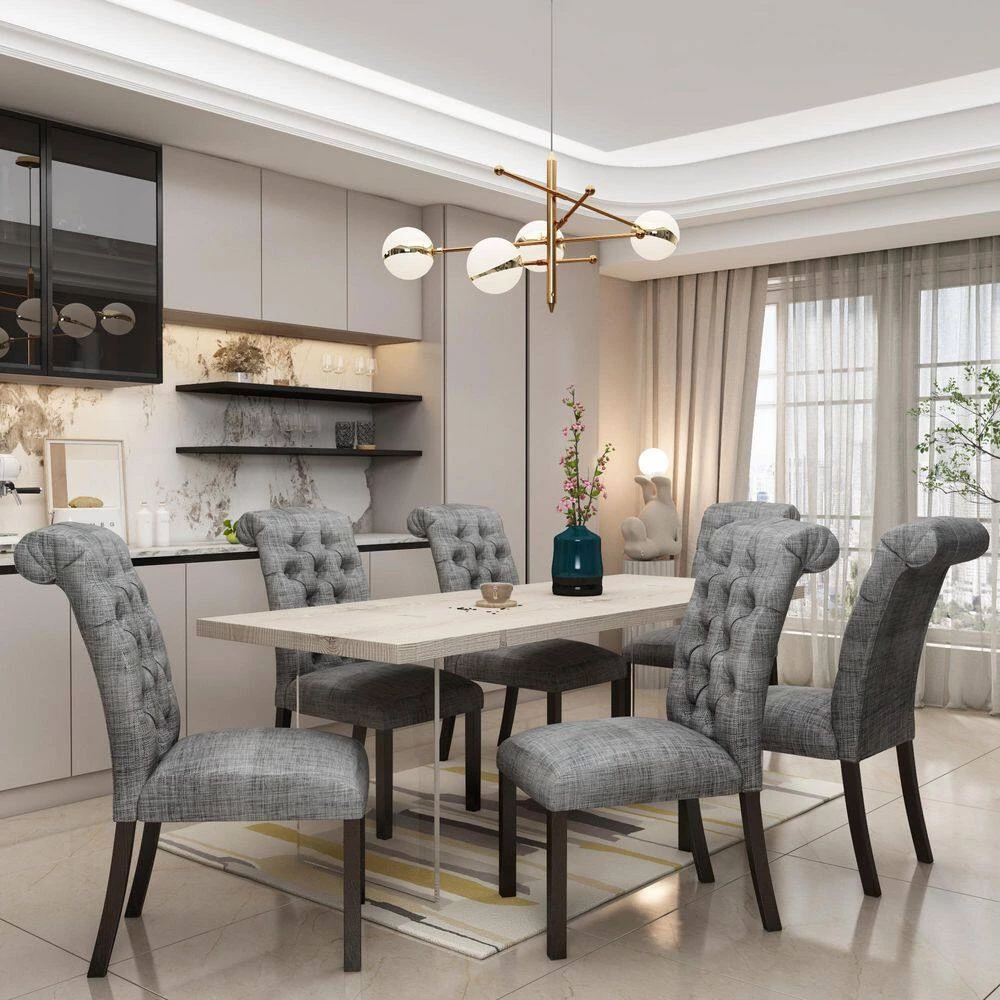 This modern dining chair has an armless design with an elegant tufted back. Built on a solid wood frame with thick foam padding, this chair provides comfortable seating for after-dinner meals that will last for years. This chair can be used as a dining chair, guest chair or home office chair.