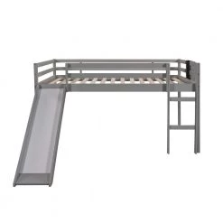 78.1 in. Gray Full Size Wood Loft Bed Bed with Slide, Stair and Chalkboard by Magic Home