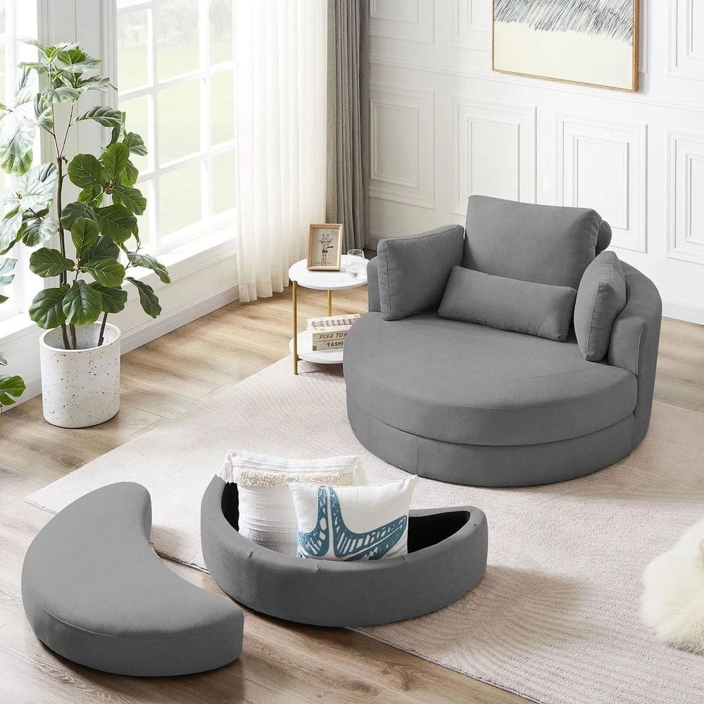 - Upholstered modern sofa chair design made of soft fabric, single chair can rotate