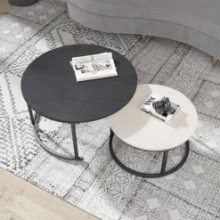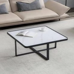 31.5 in. Square Accent Coffee Table,Black Metal Frame with Sintered Stone Tabletop by Magic Home