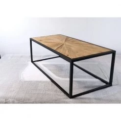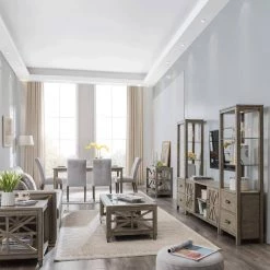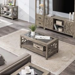 45.5 in. Antique Gray Rectangular Wood Coffee Cocktail Table with Tempered Glass Top by Magic Home