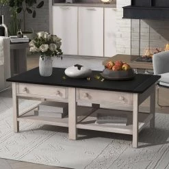 39.37 in. Black Modern Square Storage Wood Coffee Table with Large Soft-Close Drawer by Magic Home