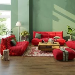 2-Piece Lazy Sofa Teddy Velvet Living Room Set with 3 Seater and Ottoman,Red by Magic Home