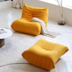 2-Piece Teddy Velvet Living Room Lazy Sofa with Ottoman in Yellow by Magic Home