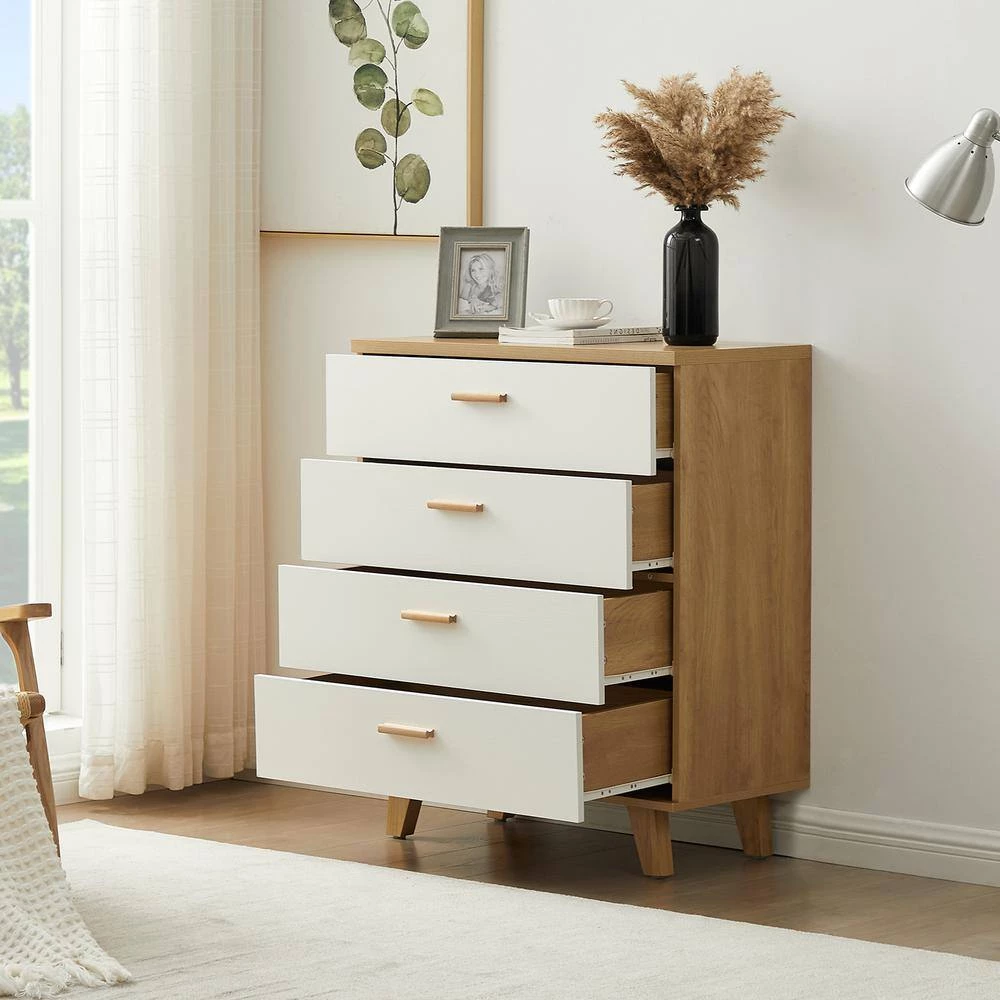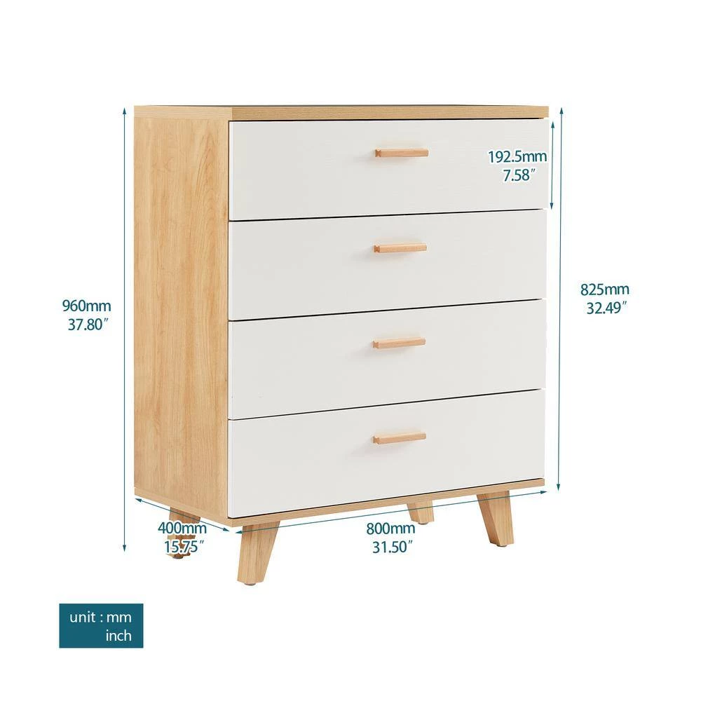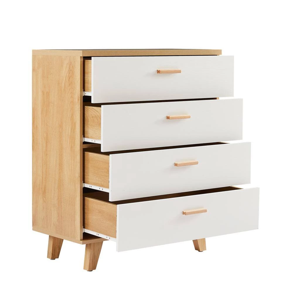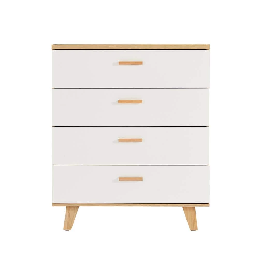 Add a touch of sophistication to your home decor with this Chest that seamlessly fuses hallmarks of contemporary and traditional styles. Crafted from wood for durability and finished in a subtle white tone, this chest will effortlessly blend with your existing decor. The chest features 4-drawers with wood handles, that lets you store all your clothes and other essentials neatly tucked away and keep your room clean.