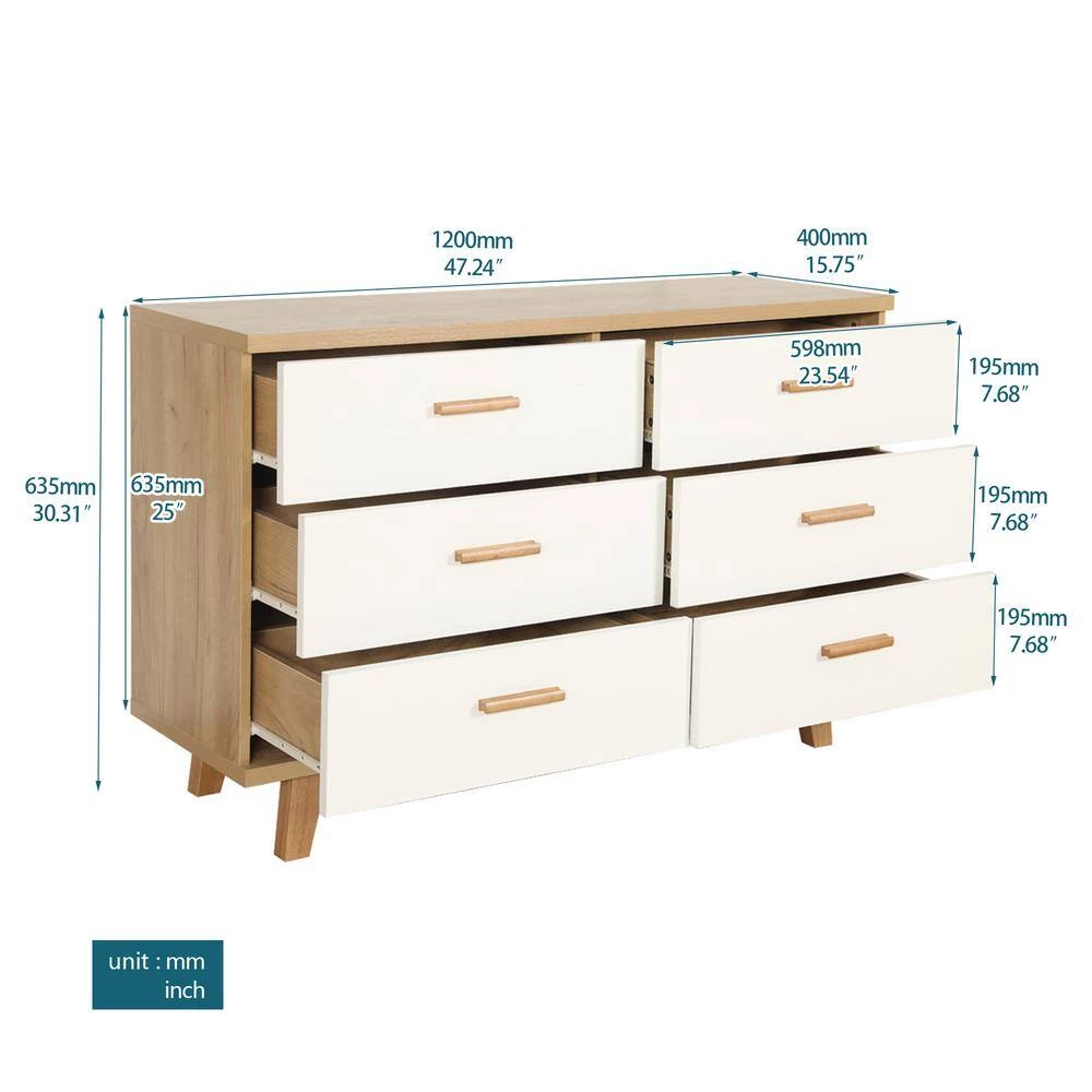 Add a touch of sophistication to your home decor with this Chest that seamlessly fuses hallmarks of contemporary and traditional styles. Crafted from wood for durability and finished in a subtle white tone, this chest will effortlessly blend with your existing decor. The chest features 6-drawers with wood handles, that lets you store all your clothes and other essentials neatly tucked away and keep your room clean.