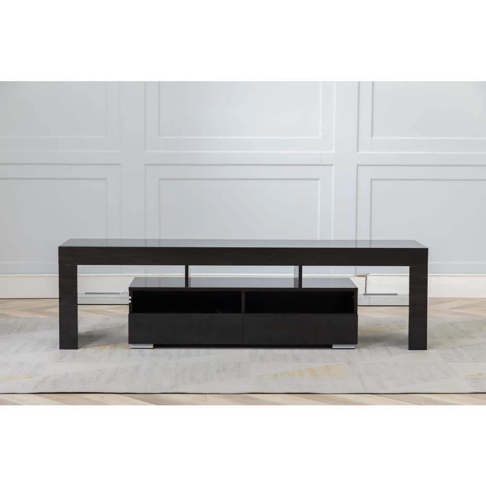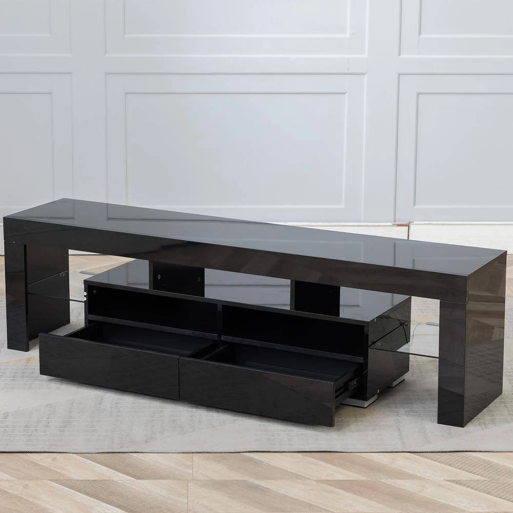 - High quality MDF board and high gloss arc and led lighting, this homey TV stand with colorful led and remote control is ideal for home lovers, RGB LED lights system with switch on/off and adjustable lights, elegant and beautiful