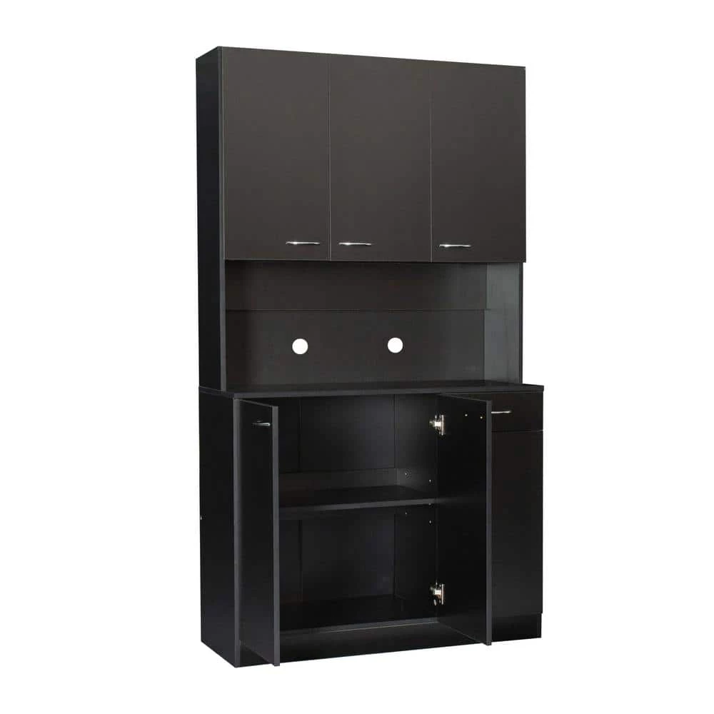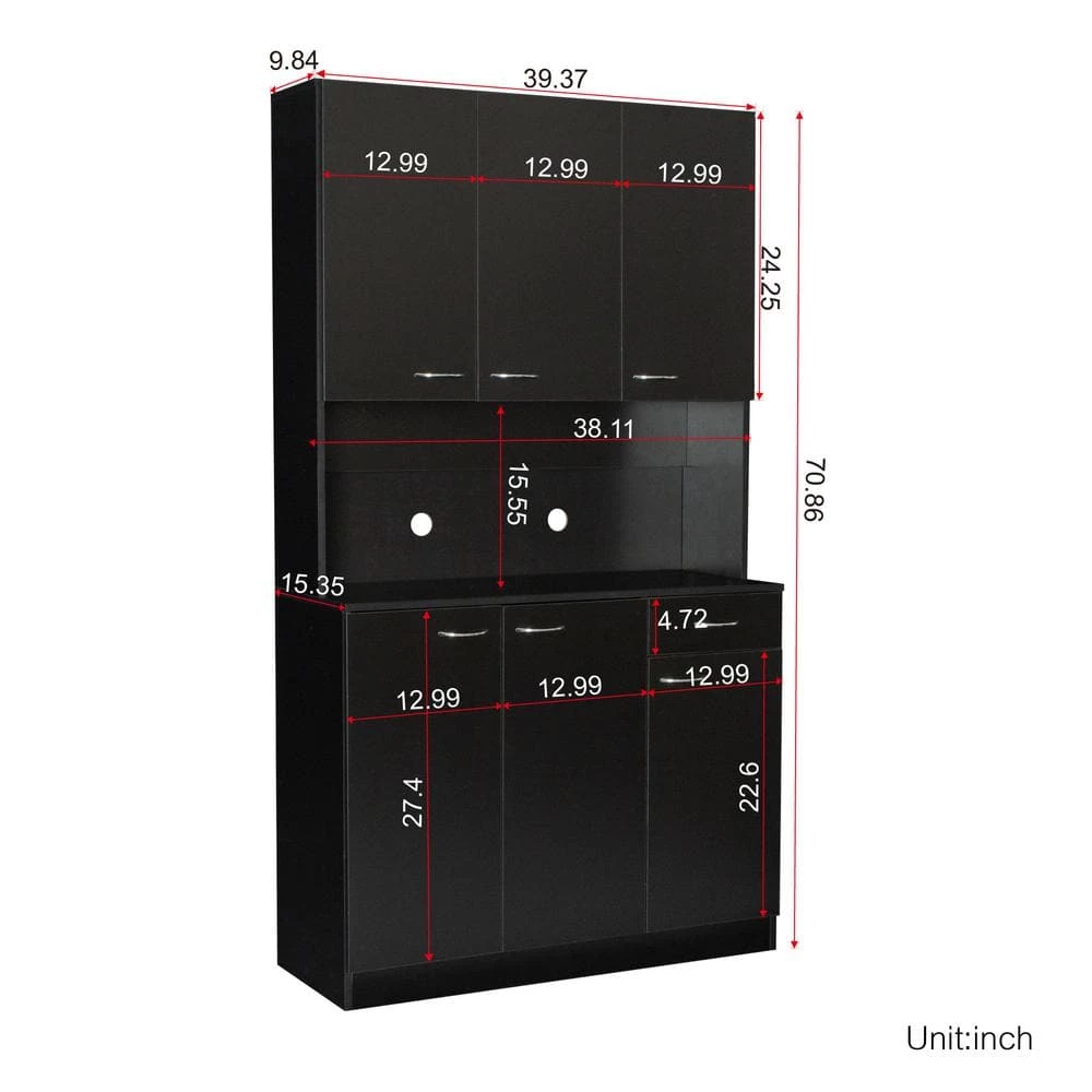 Modern 70.87 in. H Black Freestanding Kitchen Pantry Kitchen Cabinet with 6-Doors and 1-Drawer by Tidoin