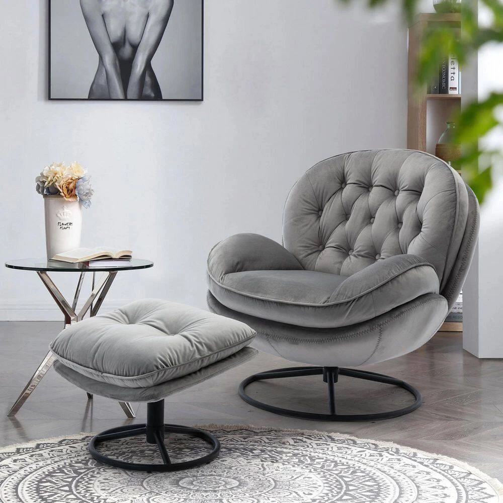 Impress your friends with this mid-century modern style. Theback velvet accent chair with velvet ottoman set,It can make you more comfortable to watch movies or play video games or more. You could prepare this sweet and intimate leisure chairs for your family and your friends. Suitable for every occasion, perfect for living room, bedroom, hotel, dorm. It will look smart in your living room or anywhere else a fashionable chair is needed. With a slight modern medieval style, Chair and Ottoman all use modular suture design,make it more luxurious while being comfortable.