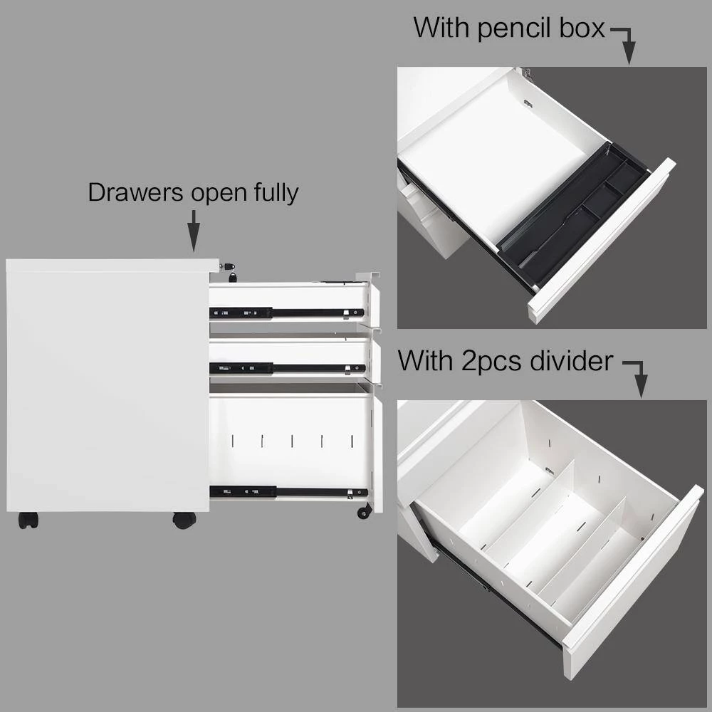- 3-drawers mobile cabinet fits under most desks and home office