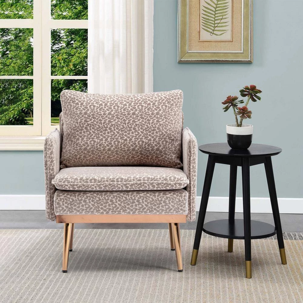 - Armchair side chair upholstered with rose golden metal legs, living room chair