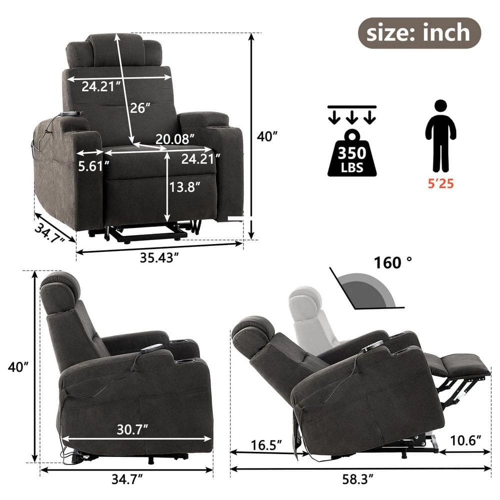 Counter-balanced lift mechanism with a UL certified power control system , pushes the entire chair up to assist the user stand up easily. It’s an ideal solution for anybody who has mobility issues or recovering from surgery. So warm and inviting, you’ll reposition your mind and body and bring your spirit into near-perfect alignment. See how everything starts looking up once you’re in a reclining position.