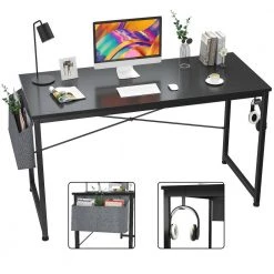 Modern 47.2 in. Rectangular Black Wood Computer Desk with Storage Bag and Hook by Tidoin