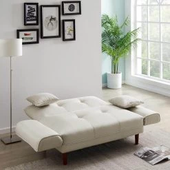 56.5 in. Polyester Lounge Sleeper Sofa Bed with Pillows, Beige by Magic Home