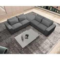 5-Piece 150 in. W Linen Rectangular Moveable Sectional Sofa with Ottoman in Dark Gray by Magic Home