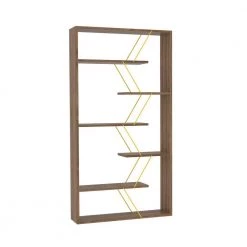 33 in. W x 62 in. H Walnut and Yellow Wood 5 Shelf Standard Bookcase by Tidoin