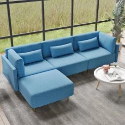 105 in. 4 Pieces Square Arm Linen L Shape Sectional Sofa with Ottoman,Gray by Magic Home