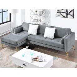 101.97 in. Mid-Century Square Arm Suede L-Shaped Sectional Sofa Couch in Light Gray by Magic Home
